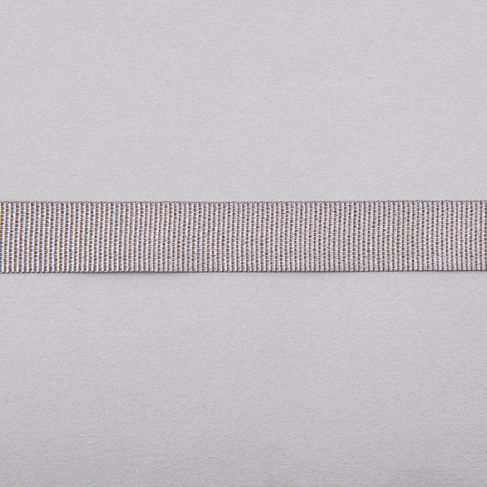 Cinta de otomán de 15 milímetros de ancho en fantasía con brillo lurex plateado sobre tono Gris.