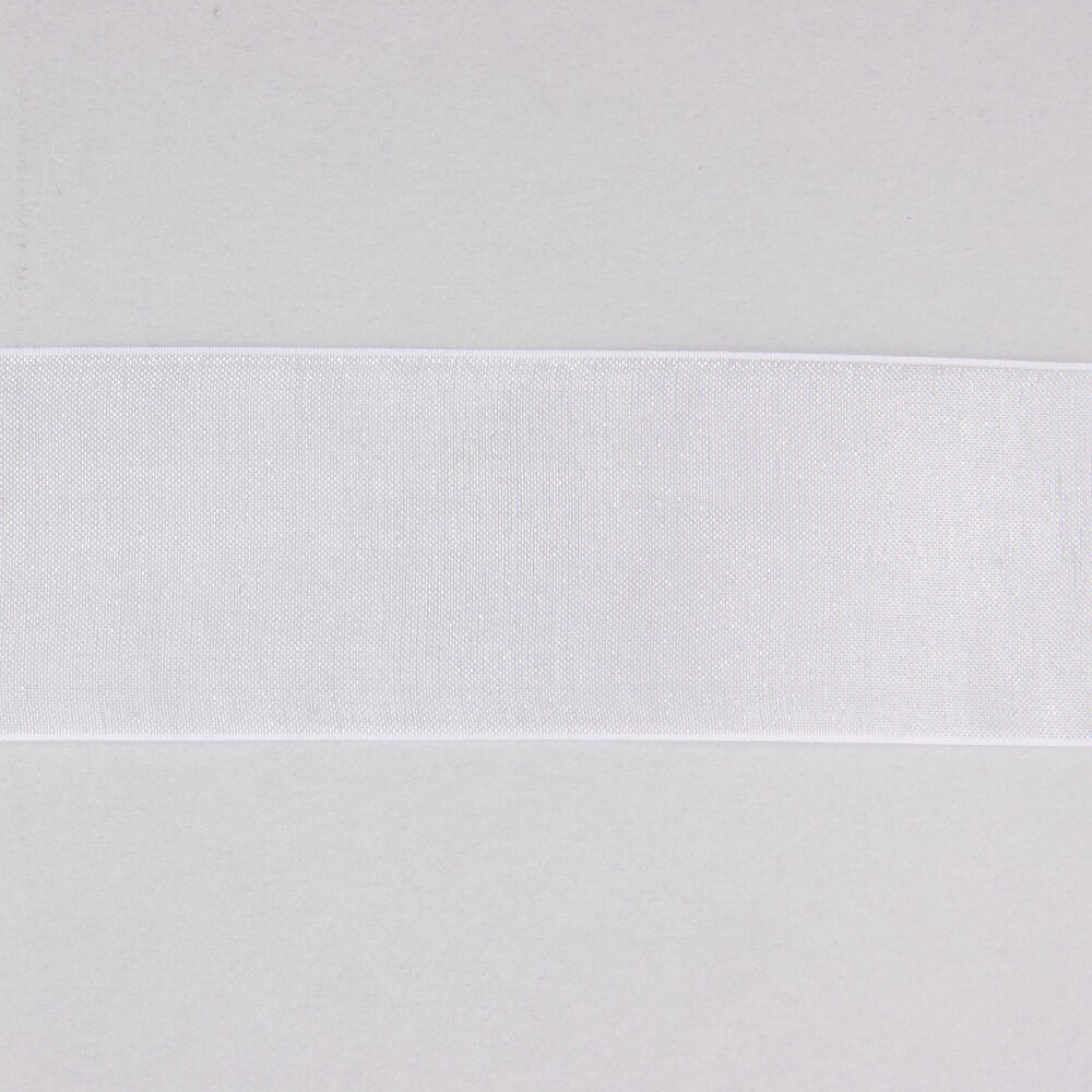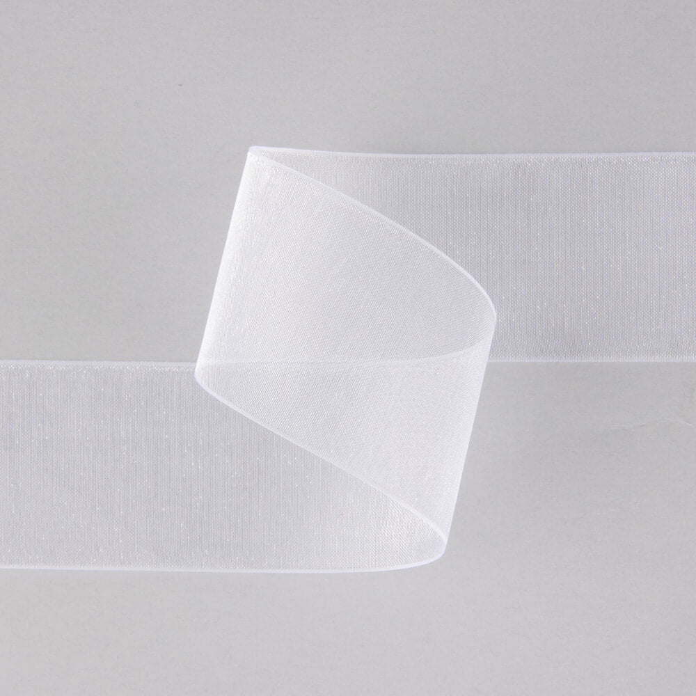 Cinta organdí en color Blanco. Cinta de muselina en poliéster de plana transparente como la gasa pero algo más rígida. Ideal para decoración en tocados, lazos...