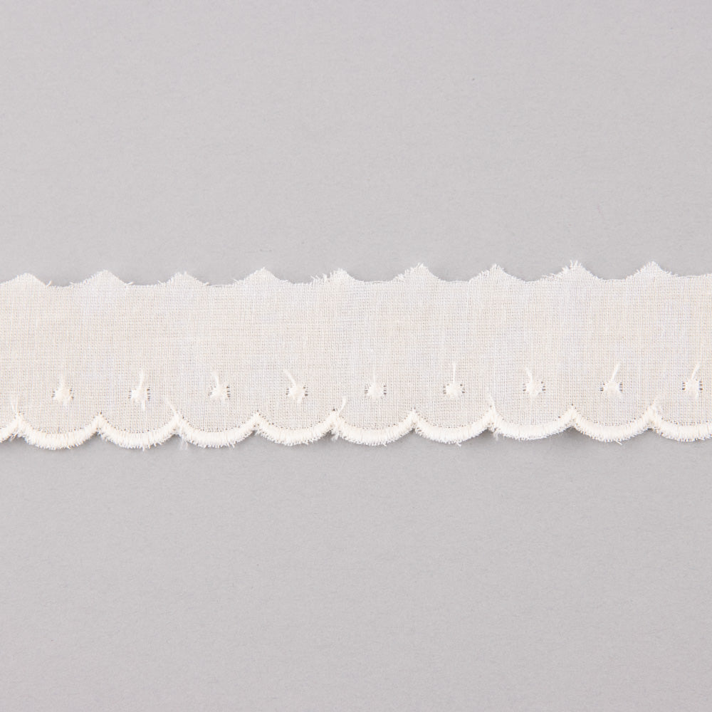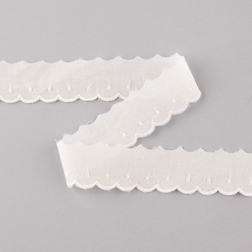 Tira de batista bordada en algodón color blanco con un ancho máximo de 3 cm.