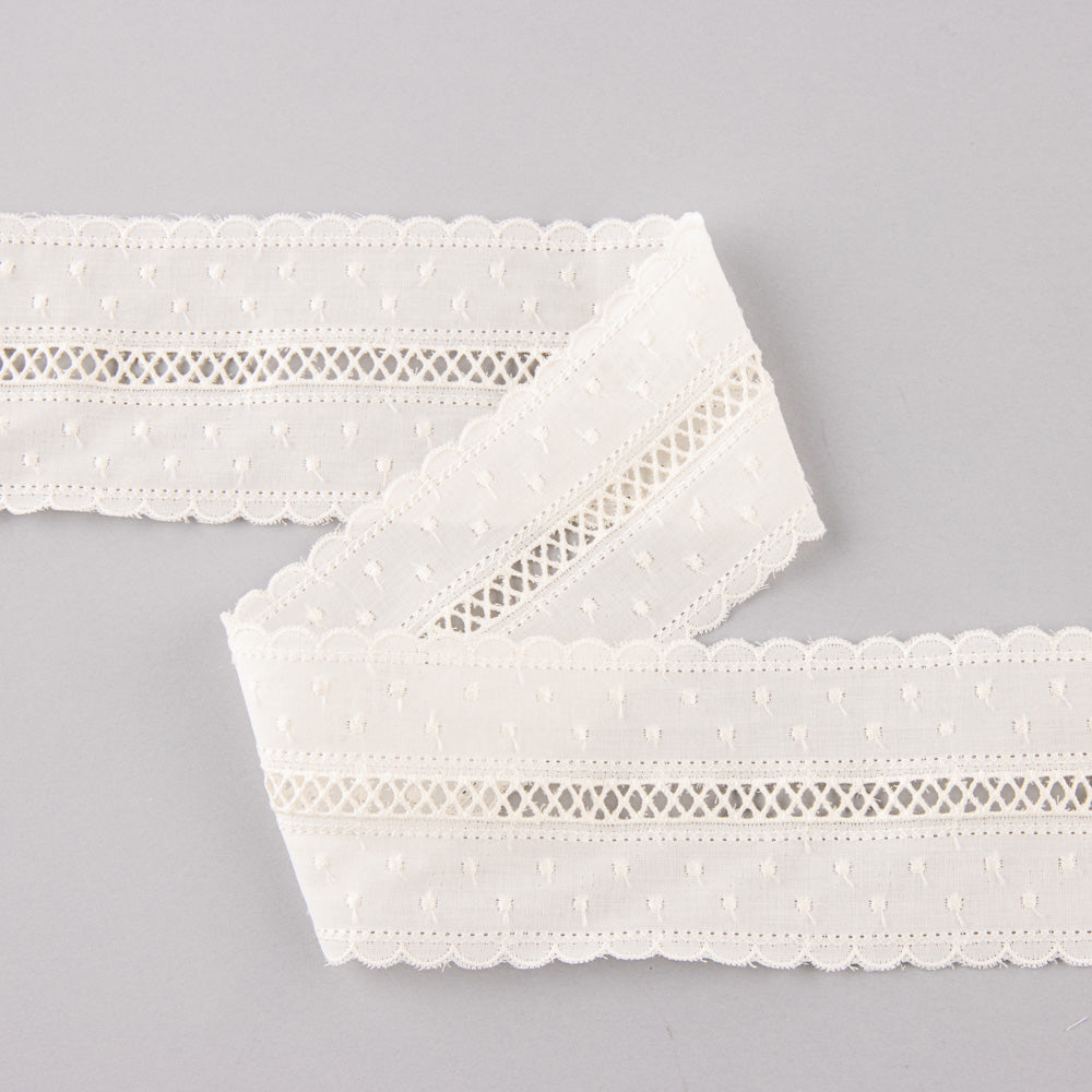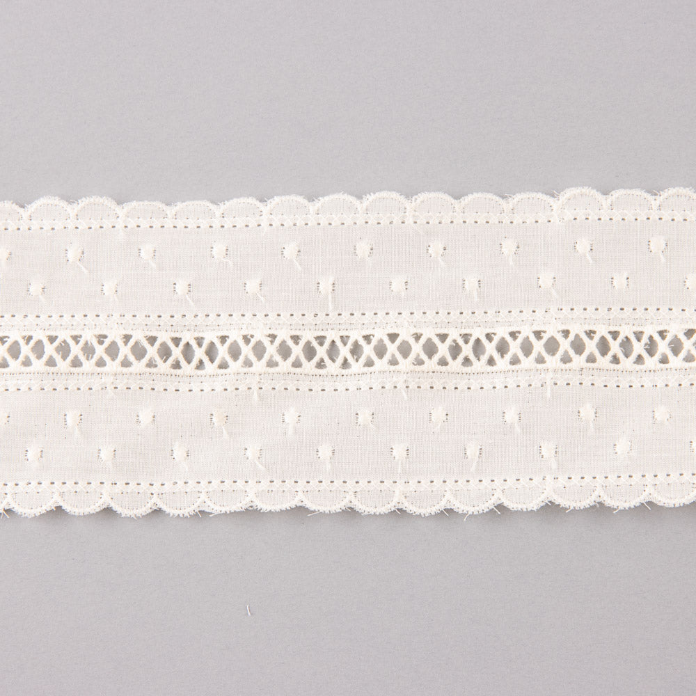Tira de batista bordada en algodón color blanco con un ancho máximo de 6 cm.