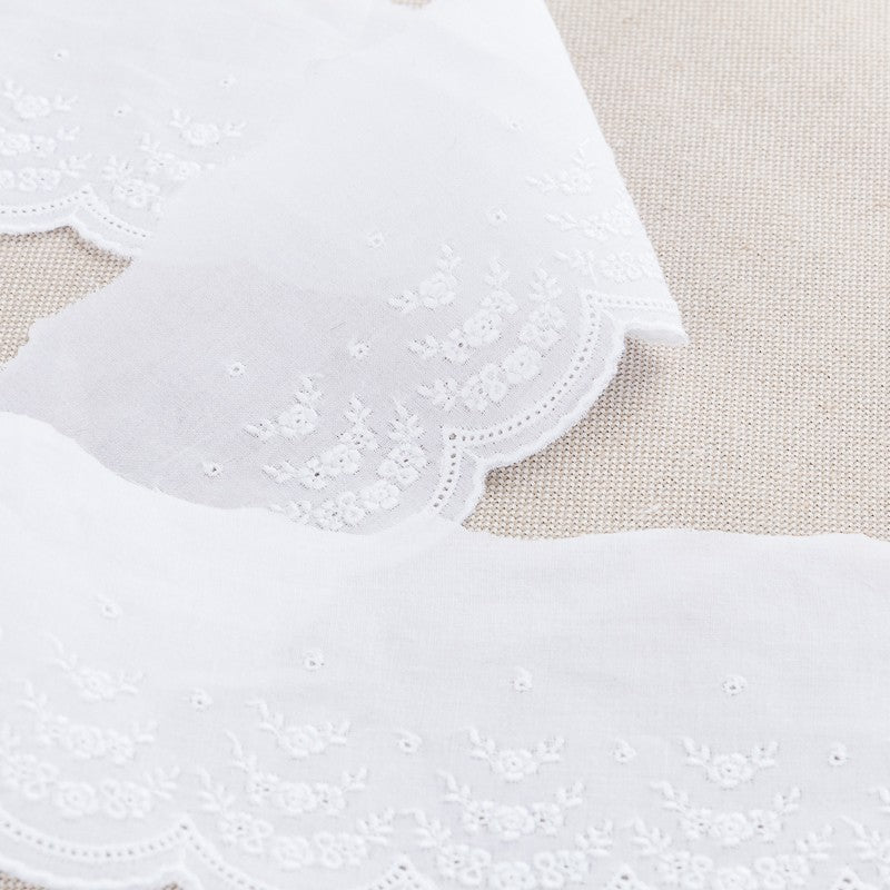 Tira de batista de 100% algodón bordada. En este caso la medida de la tira es de 7cm de anchura.