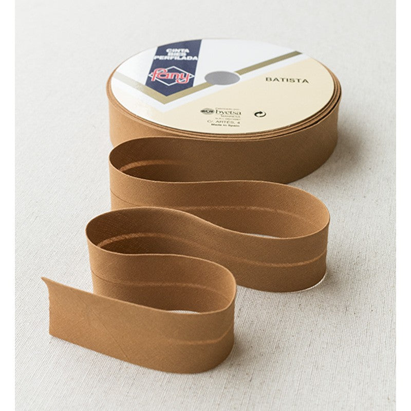 Descubre en nuestra mercería online cinta vivo de batista o cinta bies marrón de 3 centímetros.