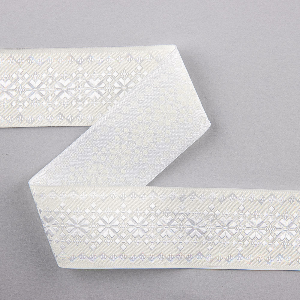 Cinta de fantasía efecto Jacquard en un tono claro sobre marfil.