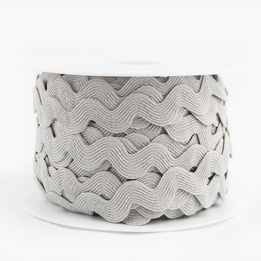 Cinta de ondulina en color gris, pasamanería en cinta con forma de zigzag para complementar tus creaciones, también conocida como cintas serpentine, sandunga, picunela...Disponible en tres medidas de ancho de cinta (el precio cambia por medida), 9 milímetros, 14 mm y 20 mm.Compra los metros de ondulina que necesites a partir de un metro.