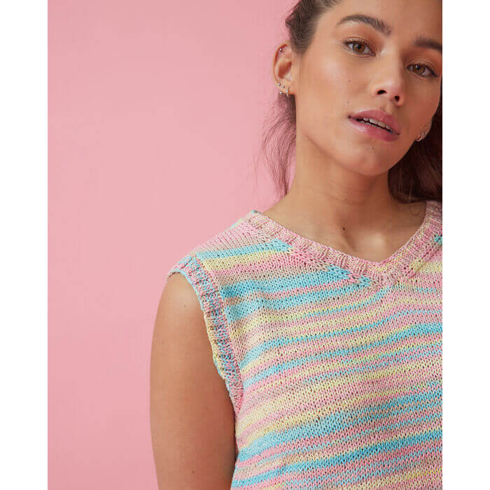 Ovillo colección Festival de Pingouin, hilo multicolor de algodón con ligeros brillos.