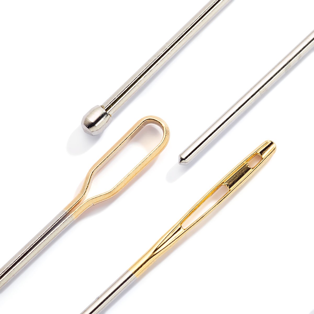 Pasacintas de acero niquelado PRYM. Estos pasacintas, como su nombre indica, nos ayudarán a pasar gomas o cintas por costuras o dobladillos sin dificultad y evitando hacernos daño al usar el tradicional imperdible. PRYM nos trae en este set dos pasacintas diferentes, a escoger según el grosos del material que queramos pasar. Uno en forma muy similar a las agujas laneras para cintas más finitas, y uno en forma de horquilla cerrada con un ojo mucho más ancho para gomas o cordones más gruesos.