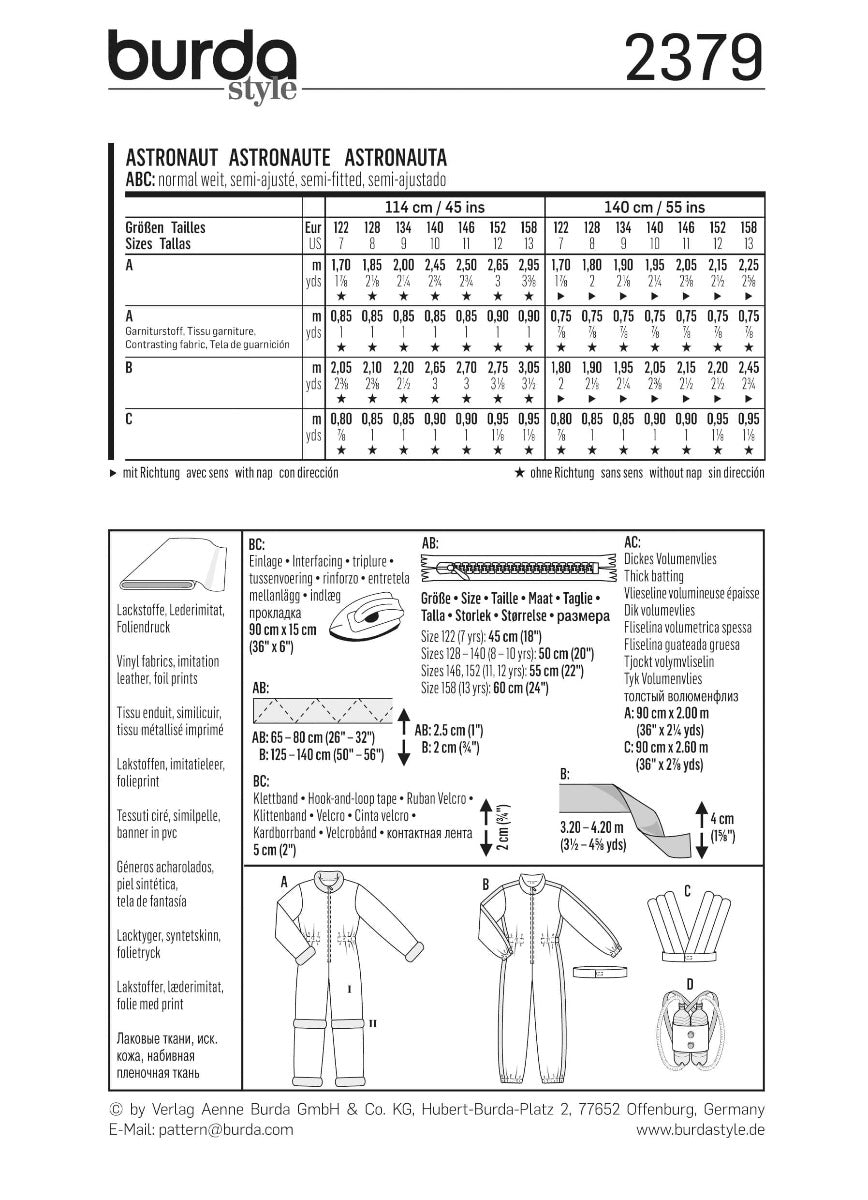Patrón Burda 2379 Astronauta - Ribes y Casals