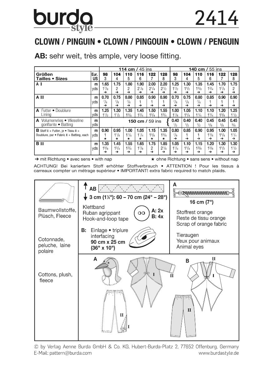 Patrón Burda 2414 Payaso y Pingüino Infantil - Ribes y Casals