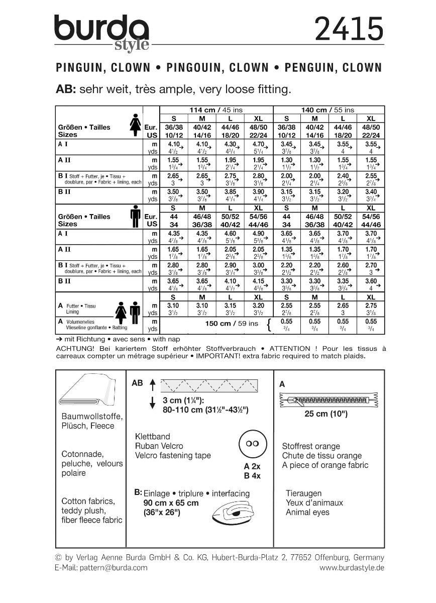 Patrón Burda 2415 Pingüino y Payaso