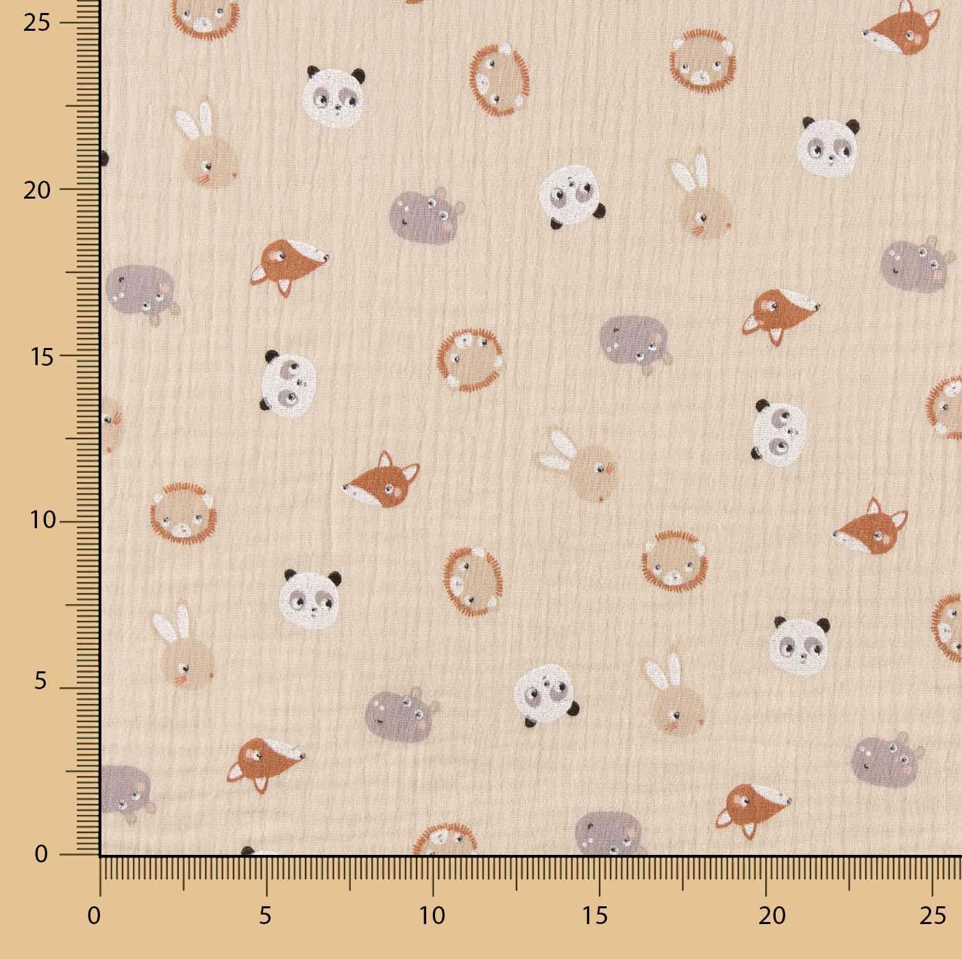 Tela de Bambula en algodón orgánico con estampado de dibujo infantil de animales en el zoo. La bambula o doble gasa de algodón, es una tela fresca y fluida, caracterizada por los pliegues que forman la estructura y el cuerpo del tejido. Es una tela fina y opaca, por lo que no necesita ningún tipo de forro. Si buscas una tela de calidad para vestidos de verano, faldas, pantalones o camisas, sin duda la bambula de algodón cumplirá con esos requisitos.