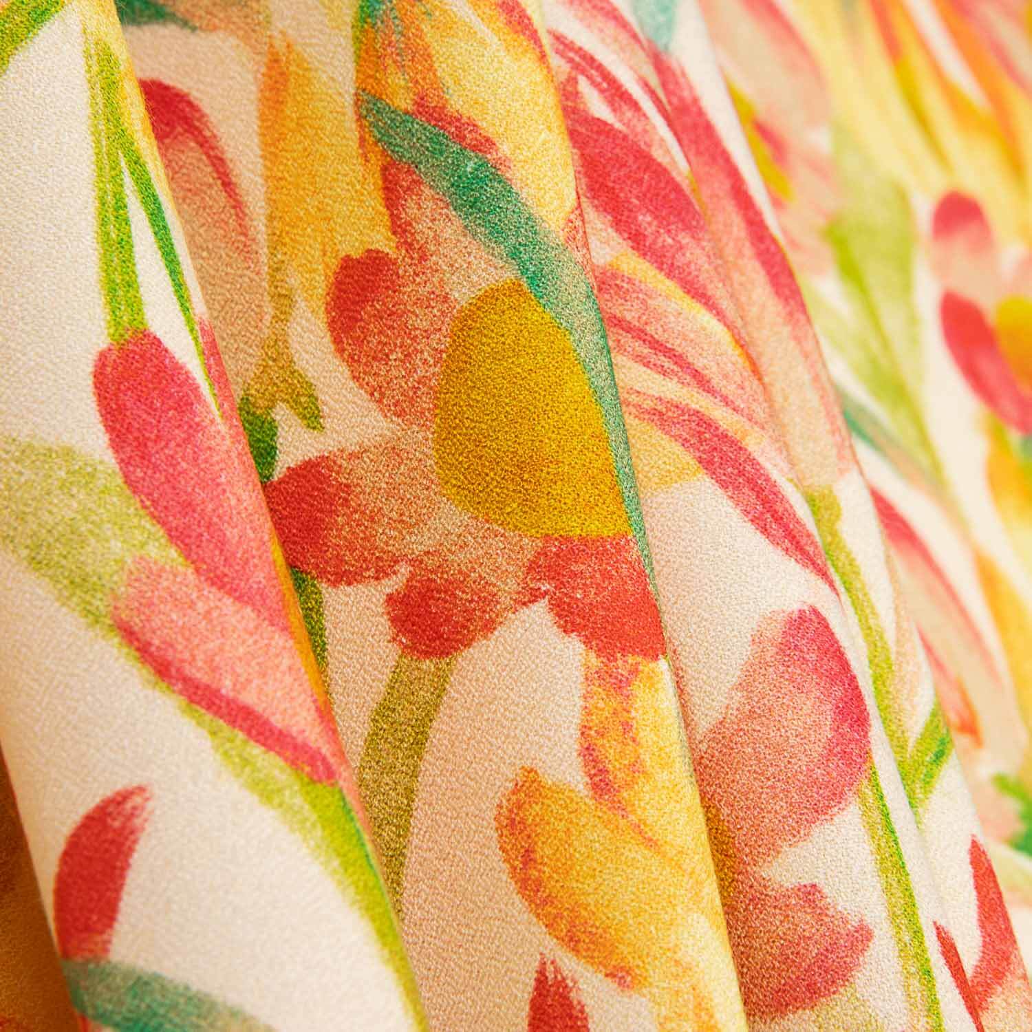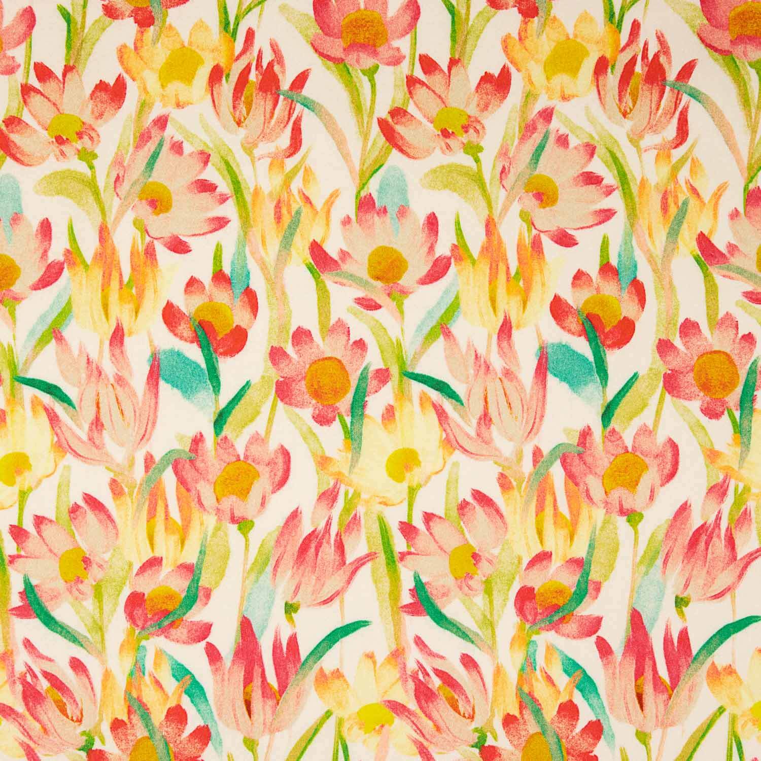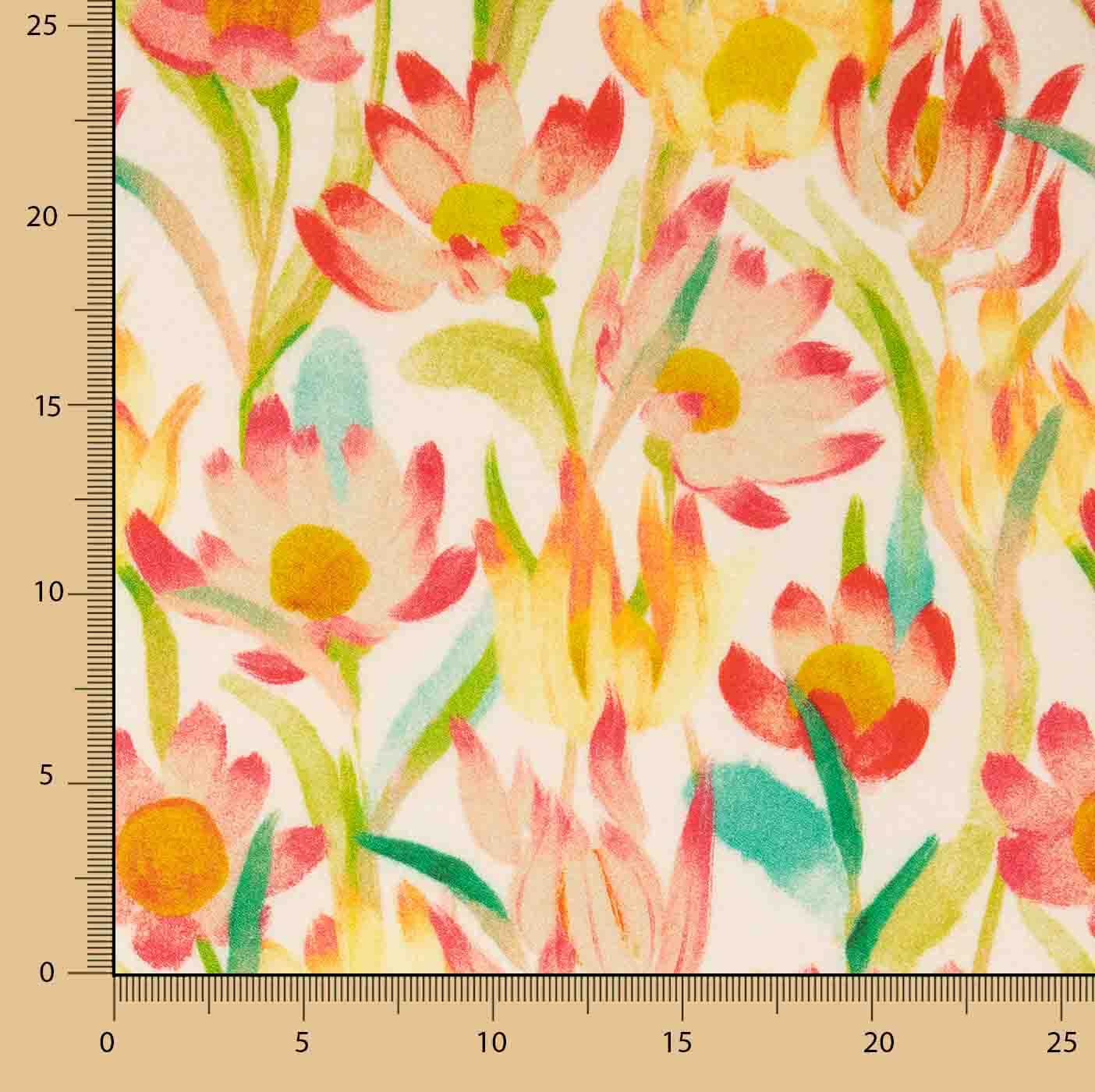 Crepé Viscosa Estampada Flores Acuarela Cálida
