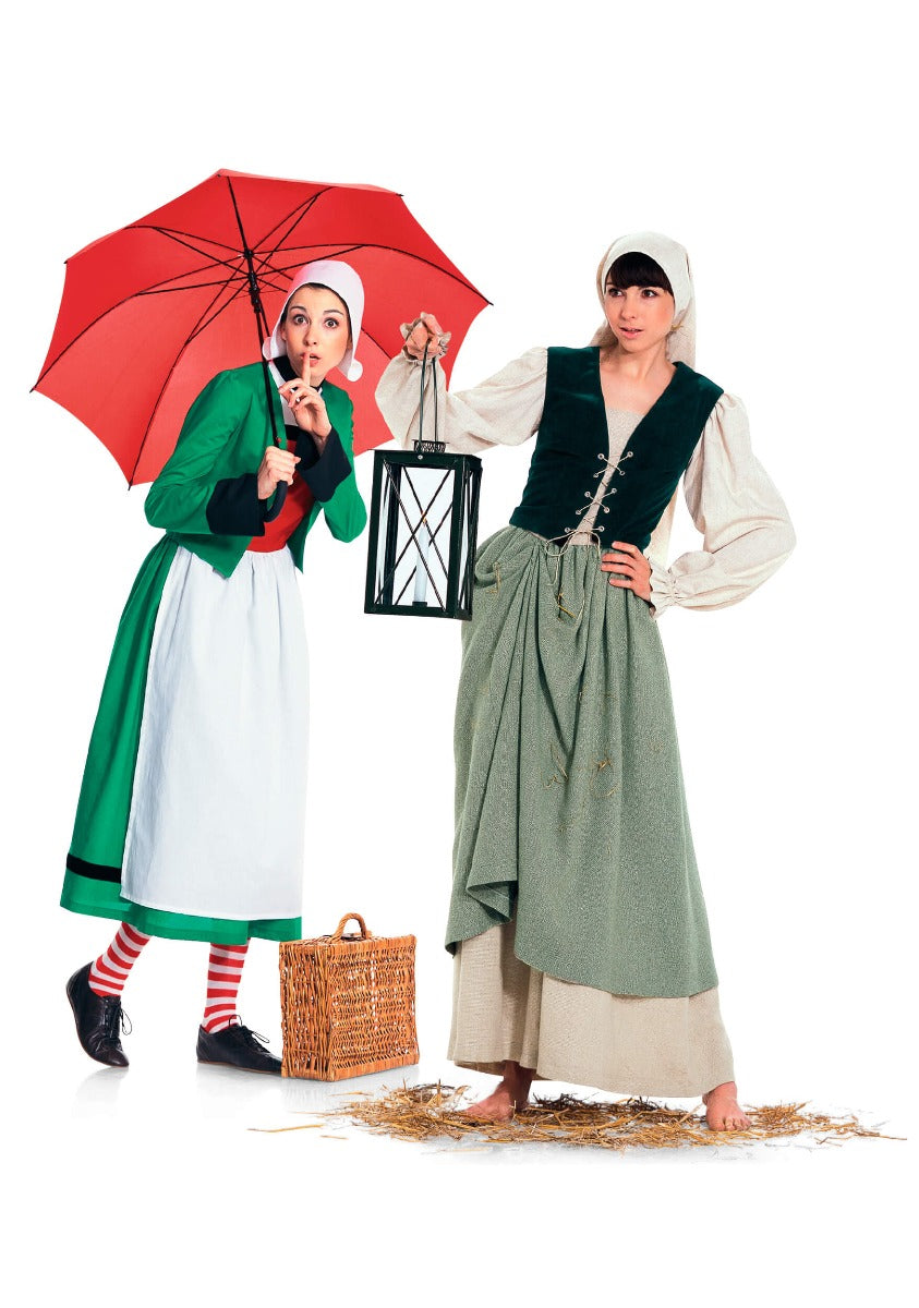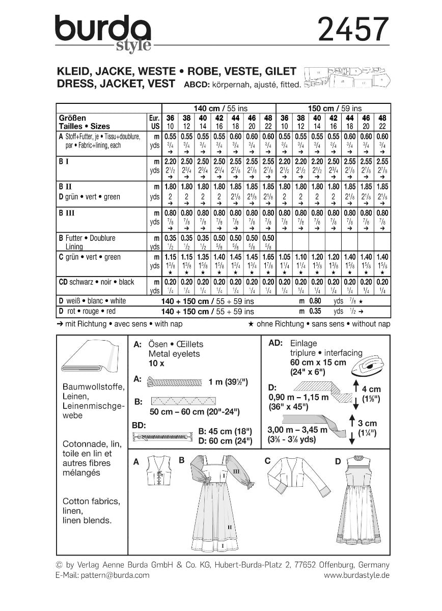 Patrones Burda de 2 originales vestidos con chaqueta y chaleco de época.