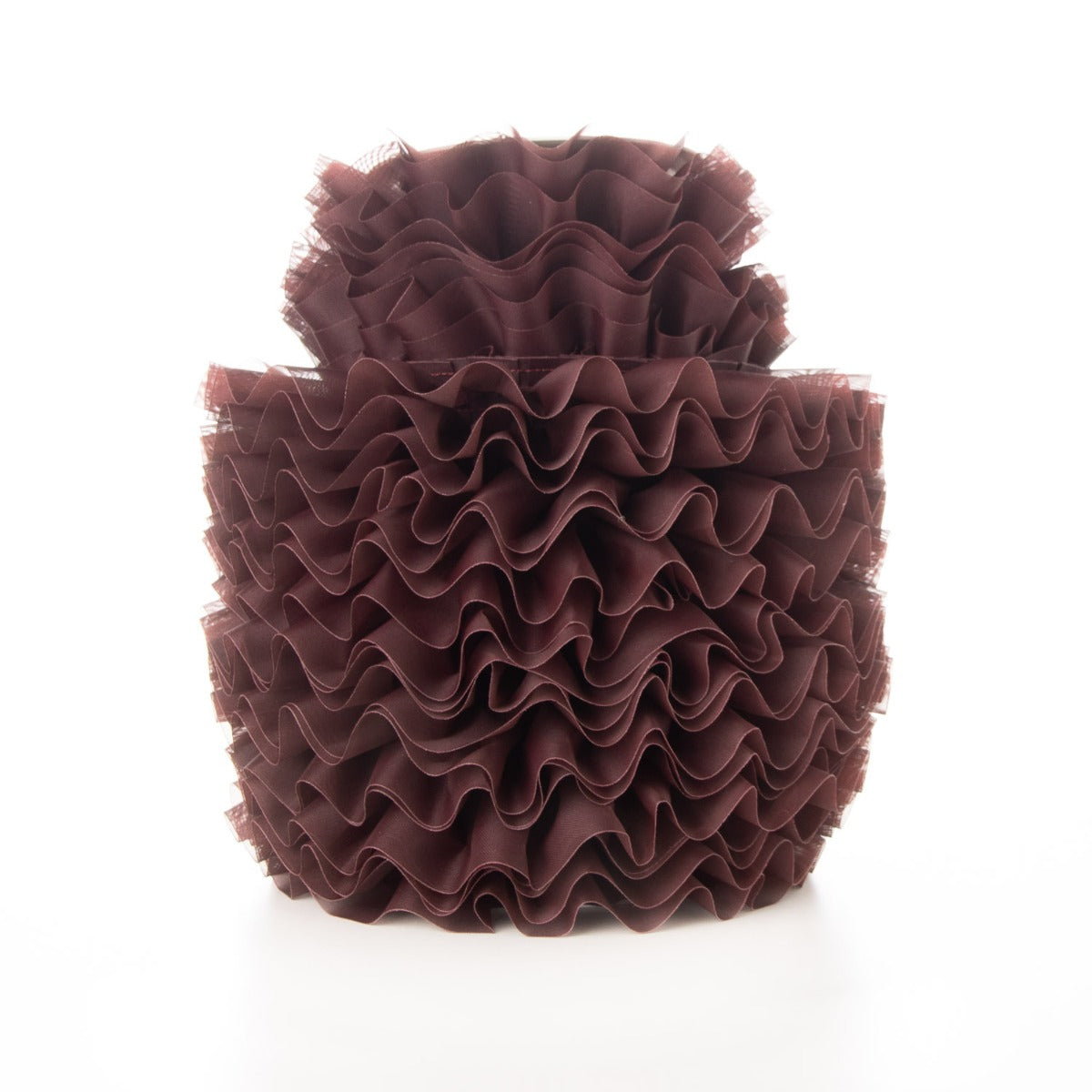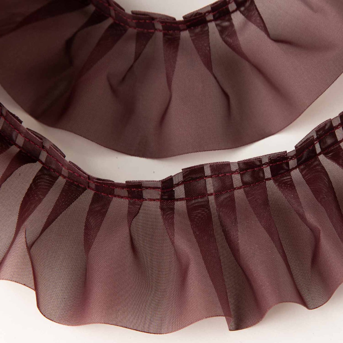 La cinta plisada garrucha en color burdeos oscuro es el complemento ideal para añadir un toque de sofisticación y distinción a cualquier diseño.