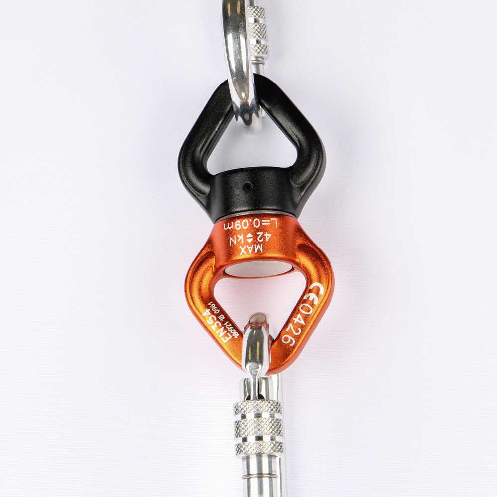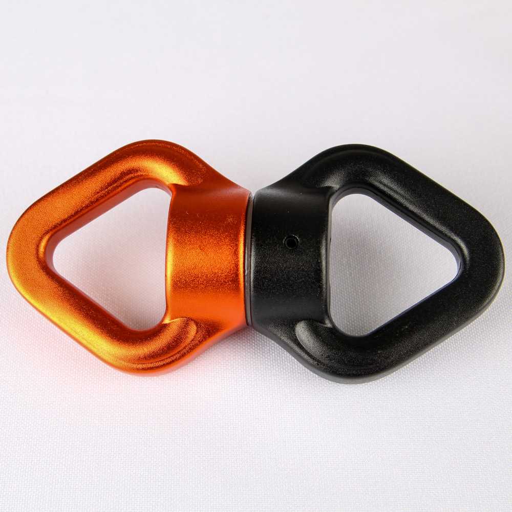 “Dancer” Giratorio aéreo de aluminio de color naranja y negro de la marca Kong. Accesorio perfecto para acrobacias y espectáculos de danza aérea así como circo, ya que permite la rotación cuando se practica aerial fitness. En caso de no utilizar este giratorio el descensor no rota y algunas acrobacias con telas aéreas no se podrían realizar.