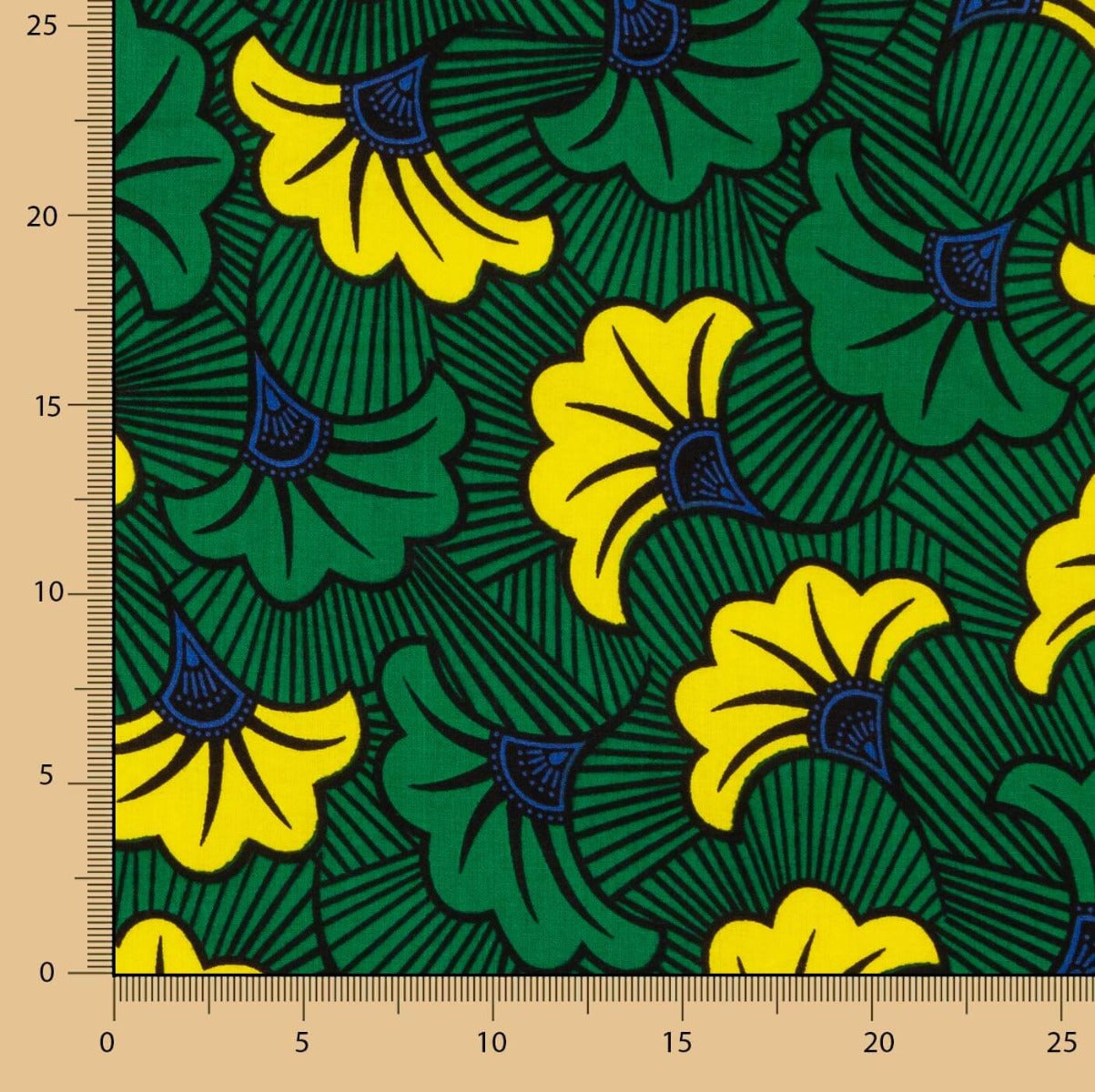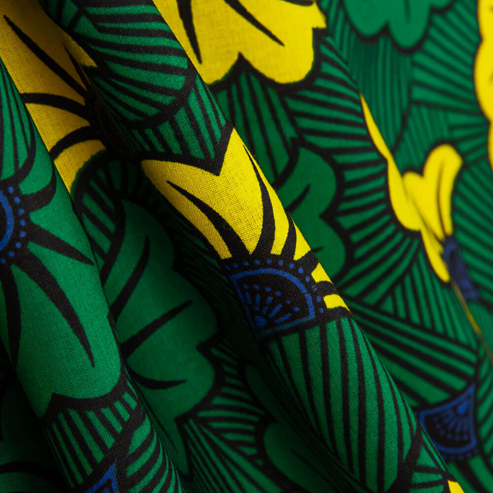 Tela WAX modelo Cumba de colores intensos ideal para hacer prendas únicas y coloridas. La tela Wax africana es un tejido de algodón, caracterizada por el acabado de cera que aporta un leve brillo y más suavidad a la tela, sostenida, fina y ligera. Tela africana ideal para confeccionar vestidos africanos, bolsos, bolsas y todo tipo de accesorios de moda y decoración del hogar.