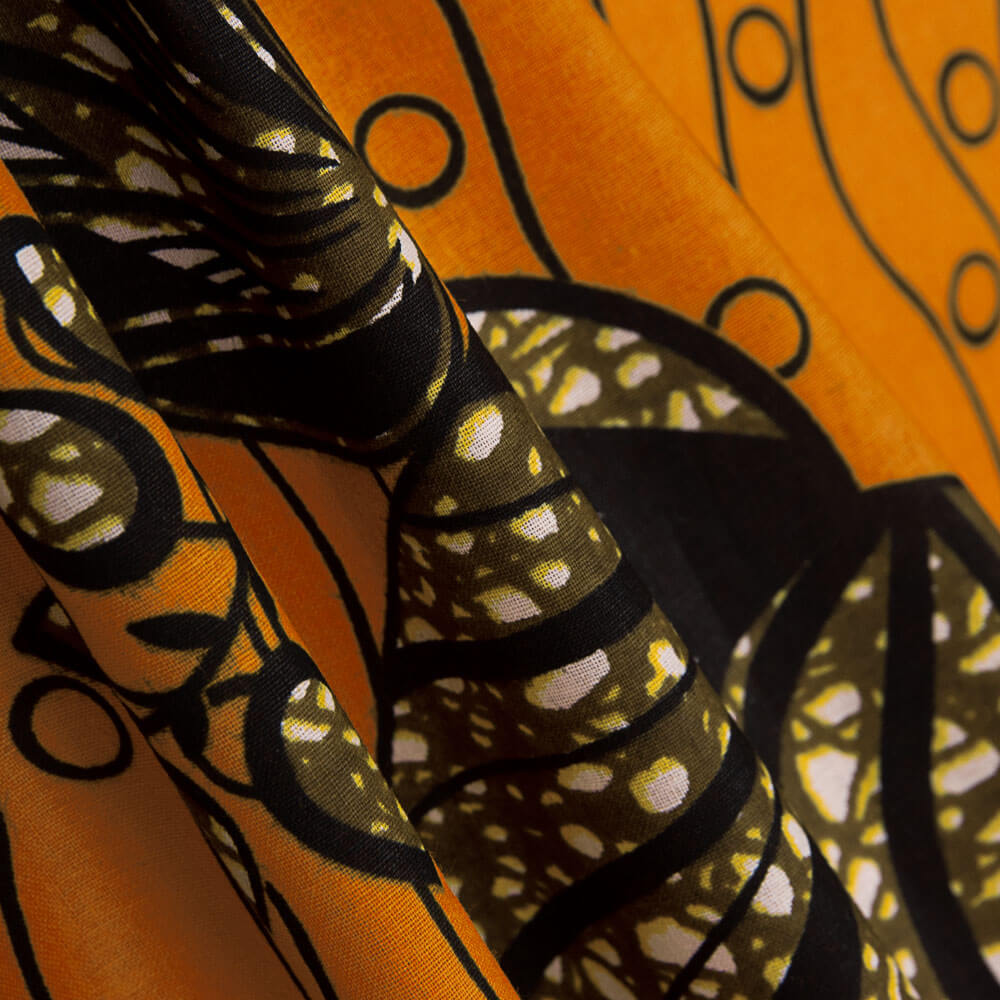 Tela WAX modelo Hapana de colores intensos ideal para hacer prendas únicas y coloridas. La tela Wax africana es un tejido de algodón, caracterizada por el acabado de cera que aporta un leve brillo y más suavidad a la tela, sostenida, fina y ligera. Tela africana ideal para confeccionar vestidos africanos, bolsos, bolsas y todo tipo de accesorios de moda y decoración del hogar.