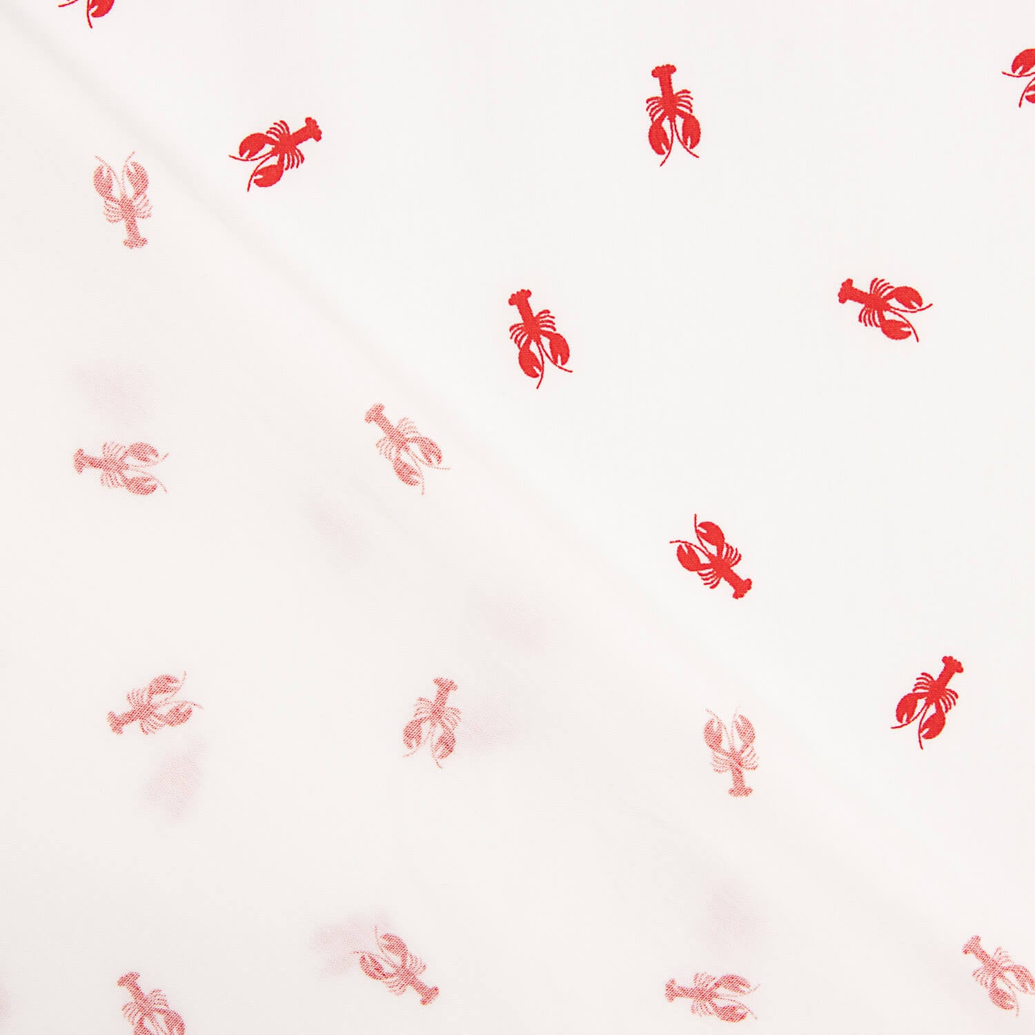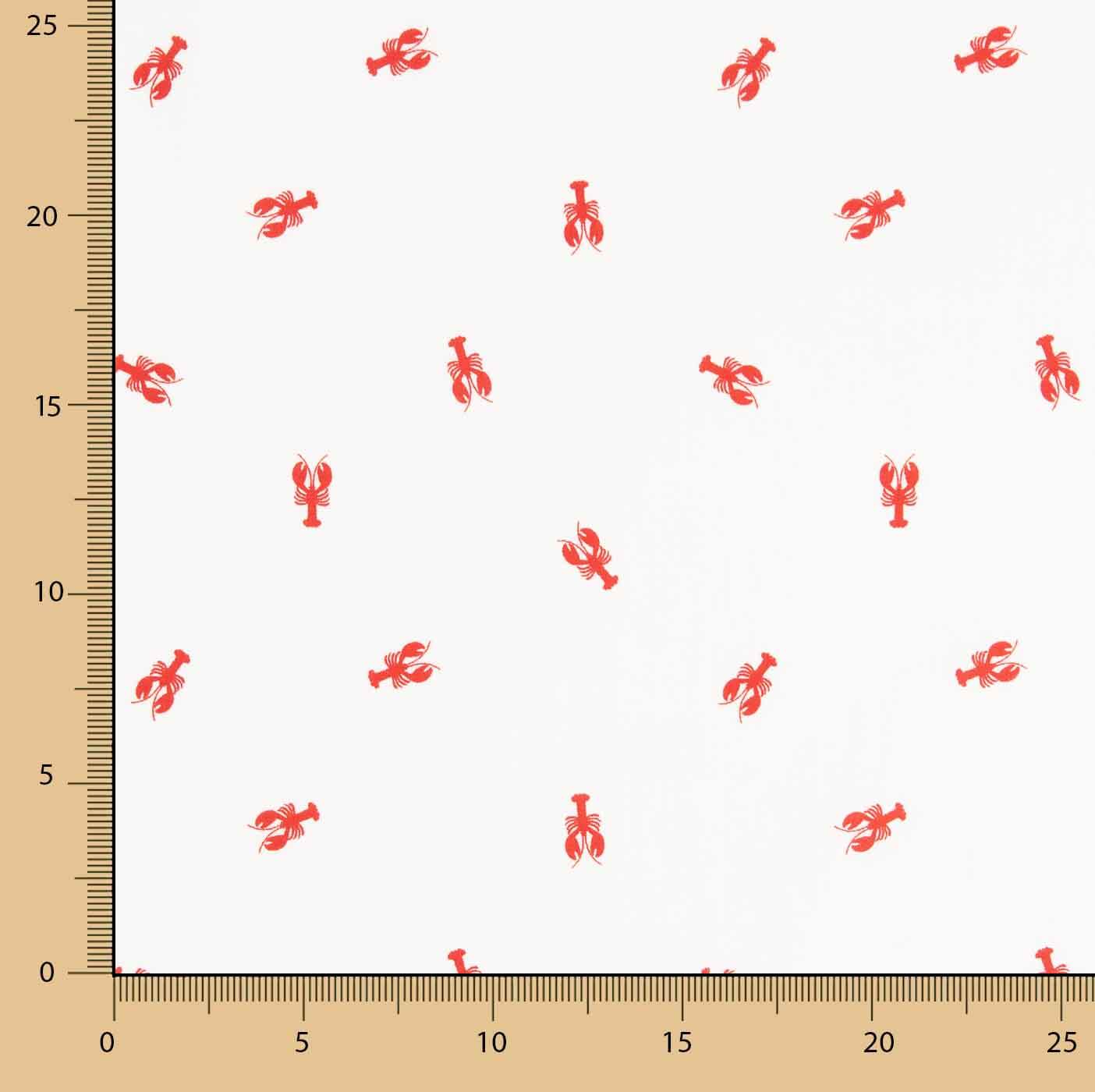 Su estampado de pequeñas langostas rojas distribuidas sobre fondo claro aporta un diseño divertido, elegante y muy actual, especialmente indicado para moda infantil, juvenil y decoración temática.