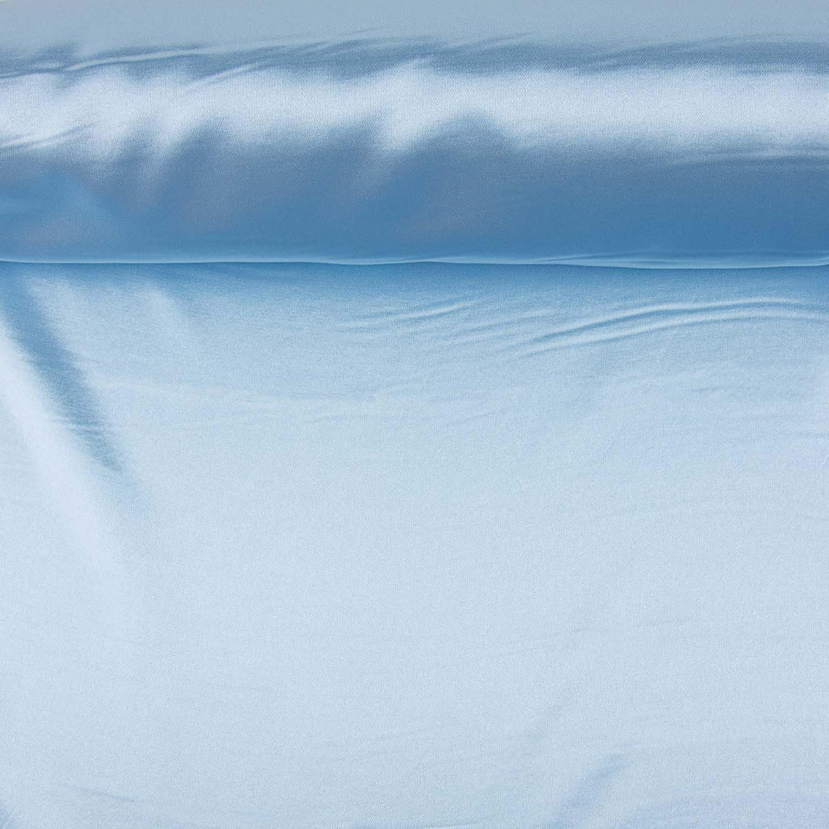 Tela de raso en poliéster en color azul celeste, fina y satinada de superficie suave y brillante, este tejido aporta un toque de glamour a cualquier diseño.