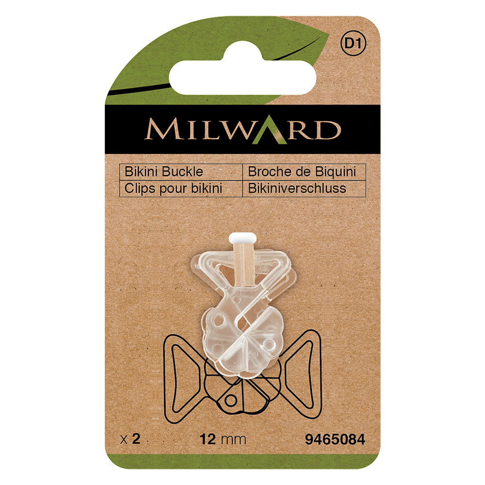 Pack de 2 hebillas de plástico transparente con cierre fácil en forma de flor ideal para bikinis, bañadores y ropa interior.