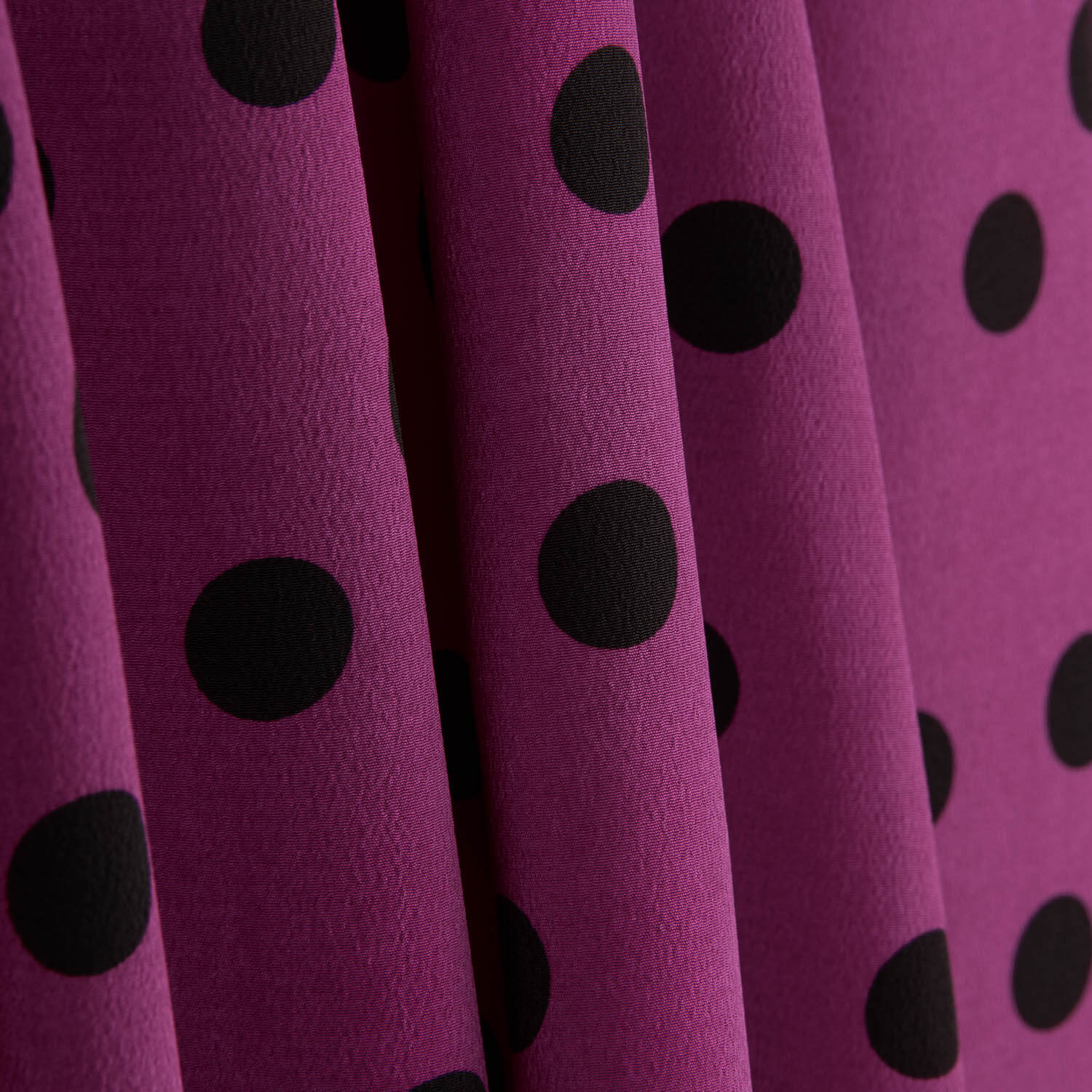 La tela Koshibo de lunares 17mm fondo efecto delavé buganvilla y lunares negros es una opción ideal para confeccionar prendas de moda con caída, comodidad y estilo. Se trata de un tejido de poliéster liso, fino y con tacto suave, muy apreciado por su fluidez y resistencia, perfecto para climas cálidos y diseños femeninos. Con un gramaje de 130 g/m² y ancho de 150 cm, el Koshibo es fácil de trabajar y ofrece un excelente rendimiento en proyectos de confección. Su textura ligeramente granulada aporta un acabado delicado, mientras que su composición 100% poliéster garantiza durabilidad, fácil planchado y bajo mantenimiento. Ideal para blusas, faldas, vestidos amplios, pantalones fluidos y camisones, es un básico imprescindible para cualquier armario.