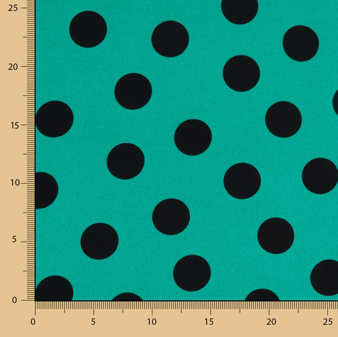 La tela Koshibo de lunares 33mm fondo efecto delavé aguamarina y lunares negros es una opción ideal para confeccionar prendas de moda con caída, comodidad y estilo. Se trata de un tejido de poliéster liso, fino y con tacto suave, muy apreciado por su fluidez y resistencia, perfecto para climas cálidos y diseños femeninos. Con un gramaje de 130 g/m² y ancho de 150 cm, el Koshibo es fácil de trabajar y ofrece un excelente rendimiento en proyectos de confección. Su textura ligeramente granulada aporta un acabado delicado, mientras que su composición 100% poliéster garantiza durabilidad, fácil planchado y bajo mantenimiento. Ideal para blusas, faldas, vestidos amplios, pantalones fluidos y camisones, es un básico imprescindible para cualquier armario.