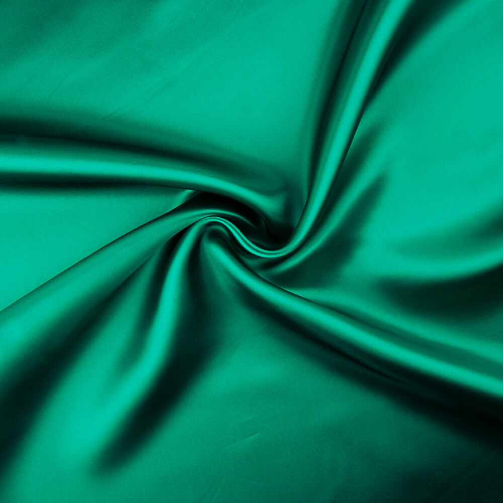 Tela de forro de rayón en color verde esmeralda de gran calidad, compuesto por viscosa y acetato. Acabado satinado muy elegante, tela muy suave, ligera y totalmente transpirable.