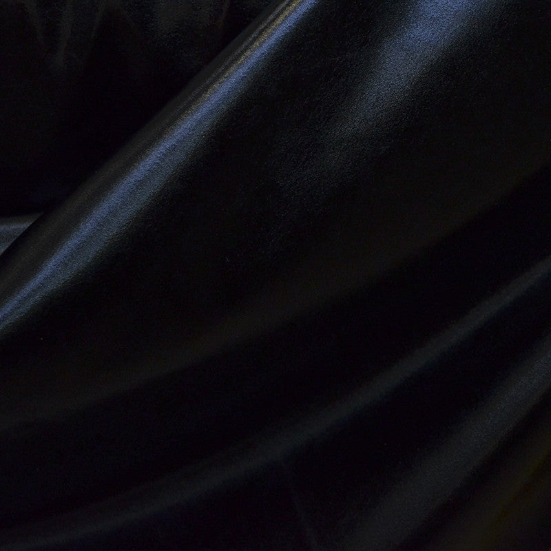 Lycra foil printed de color negra. El foil printed es una tela elástica, opca y muy fina, con cierto peso. Tela con aspecto metalizado ideal para vestidos de espectáculo, baile y disfraces.