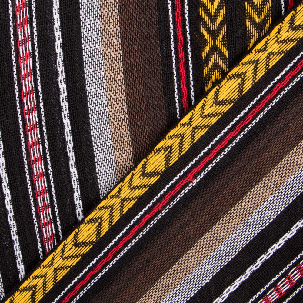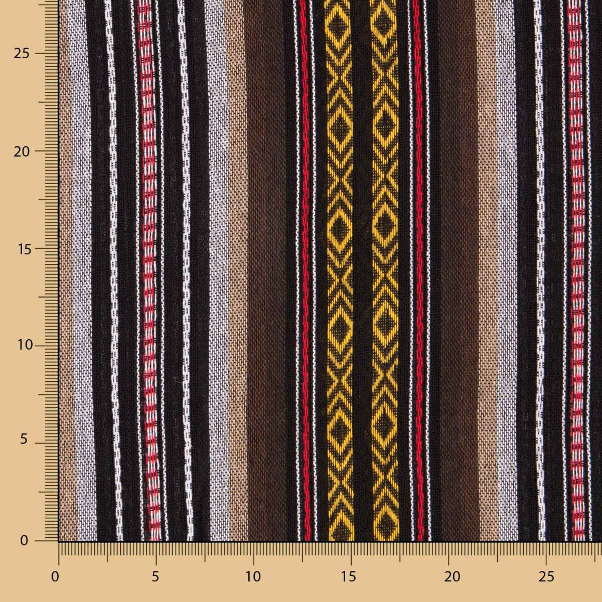 Tela de estilo muy característico con grosor y cuerpo para muchos fines de costura como: trajes regionales, decoraciones, tapicería... Tela con tramado de colores muy característicos.