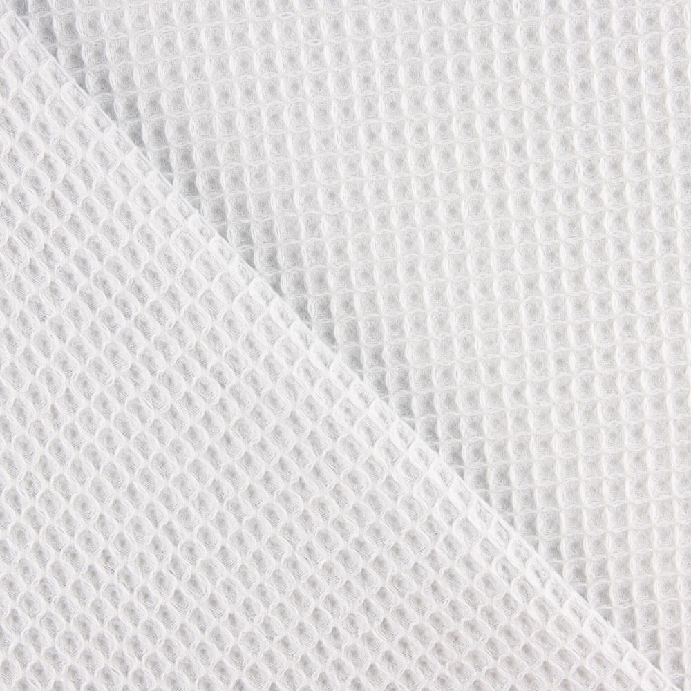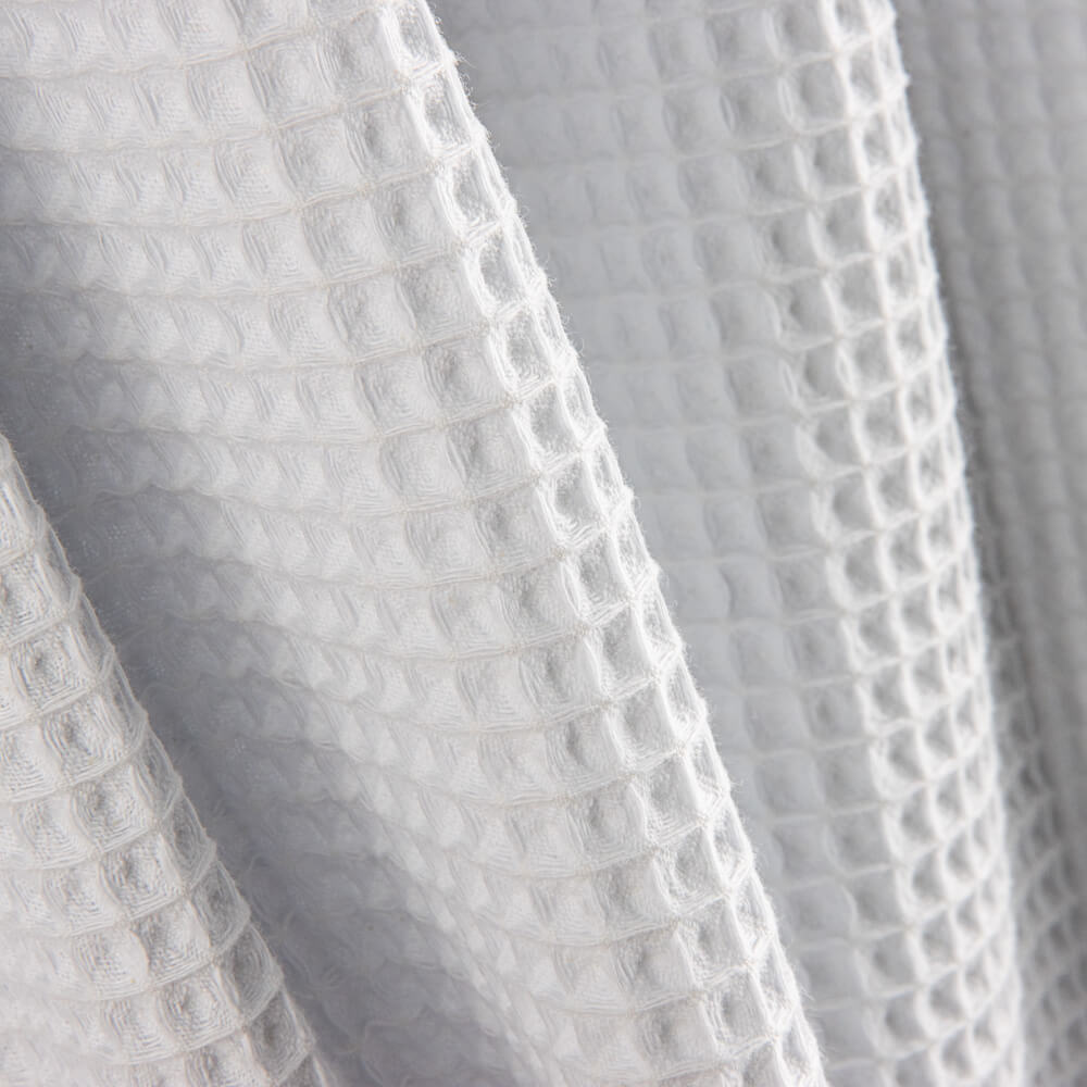 Tela de piqué Waflle en color celeste claro. Tela también conocida como toalla piqué, por los cuadraditos en relieve que componen el tejido.