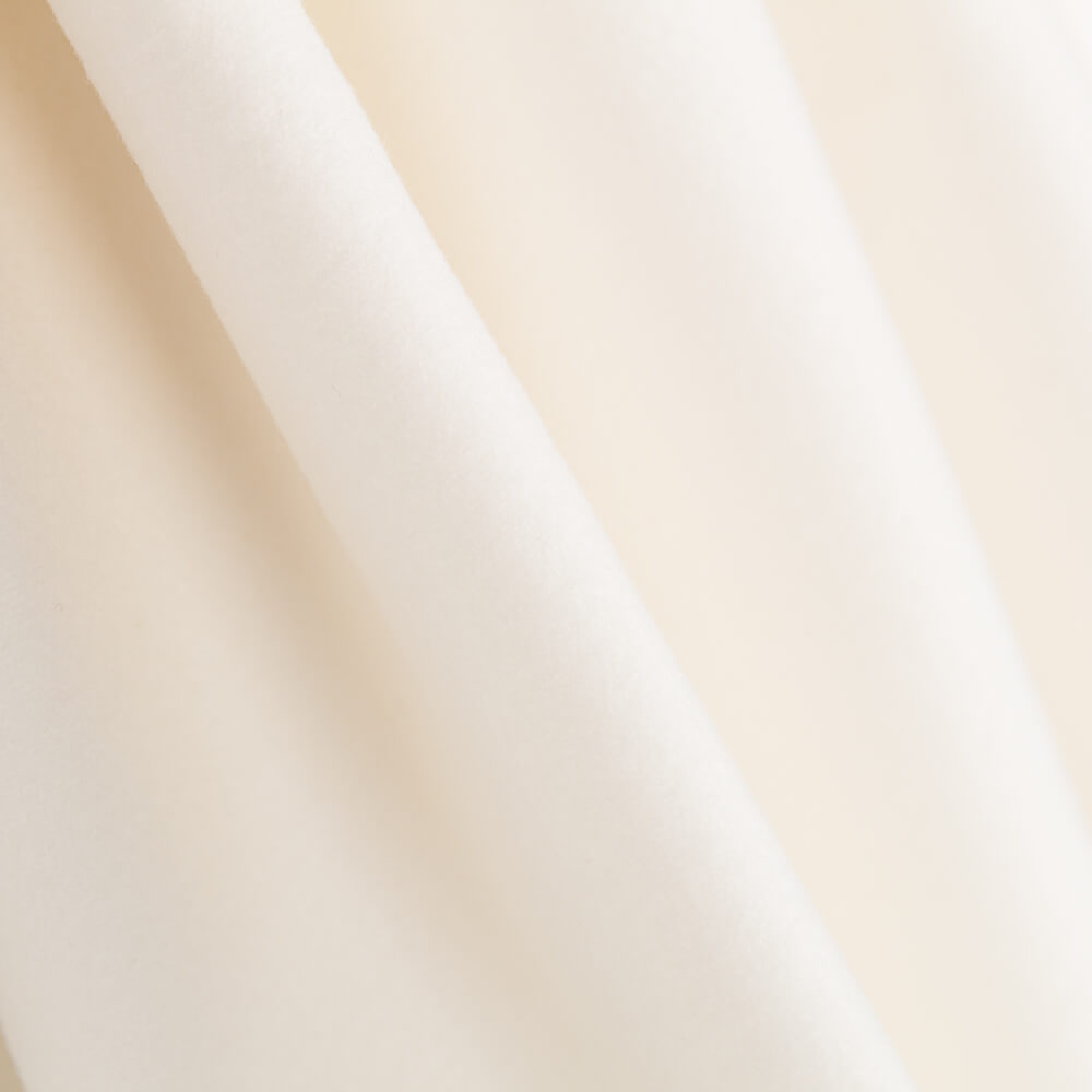 Tela para abrigos de mouflón color crudo. El mouflón de poliéster es una tela muy gruesa, sostenida y suave al tacto. Al ser de poliéster el lavado requiere menos cuidado, por lo que aumenta la durabilidad.  Tela de abrigo para prendas exteriores de invierno.