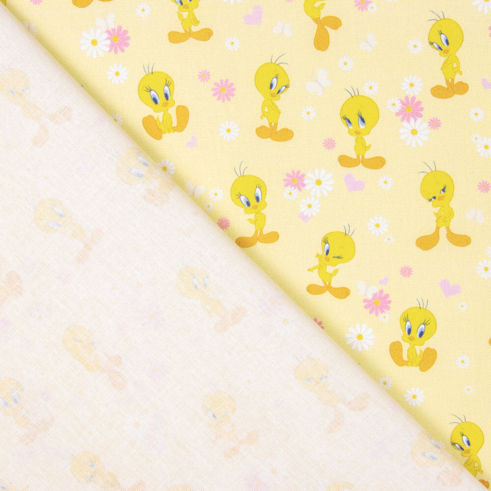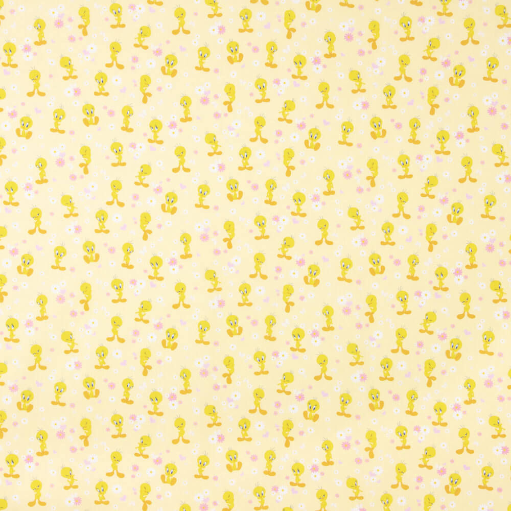 Tela de algodón grueso con estampado digital infantil de dibujos del personaje de Piolin. Popelín de algodón 100% estilo cretona.