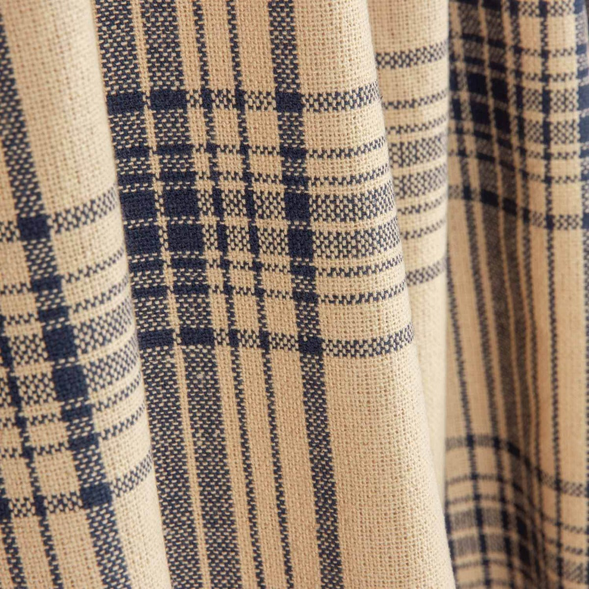 Esta elegante tela de estilo esterilla con estampado de cuadros en azul sobre fondo beige es ideal para quienes buscan un diseño clásico, rústico y con textura natural.