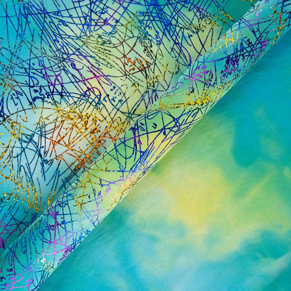 Tela de lycra con estampado degradé spider lamé verde.