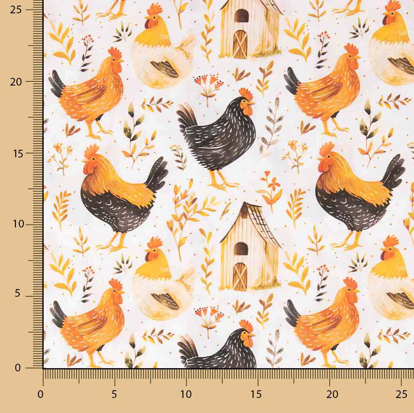 Popelín Algodón Estampado Gallinas