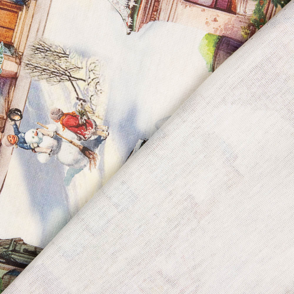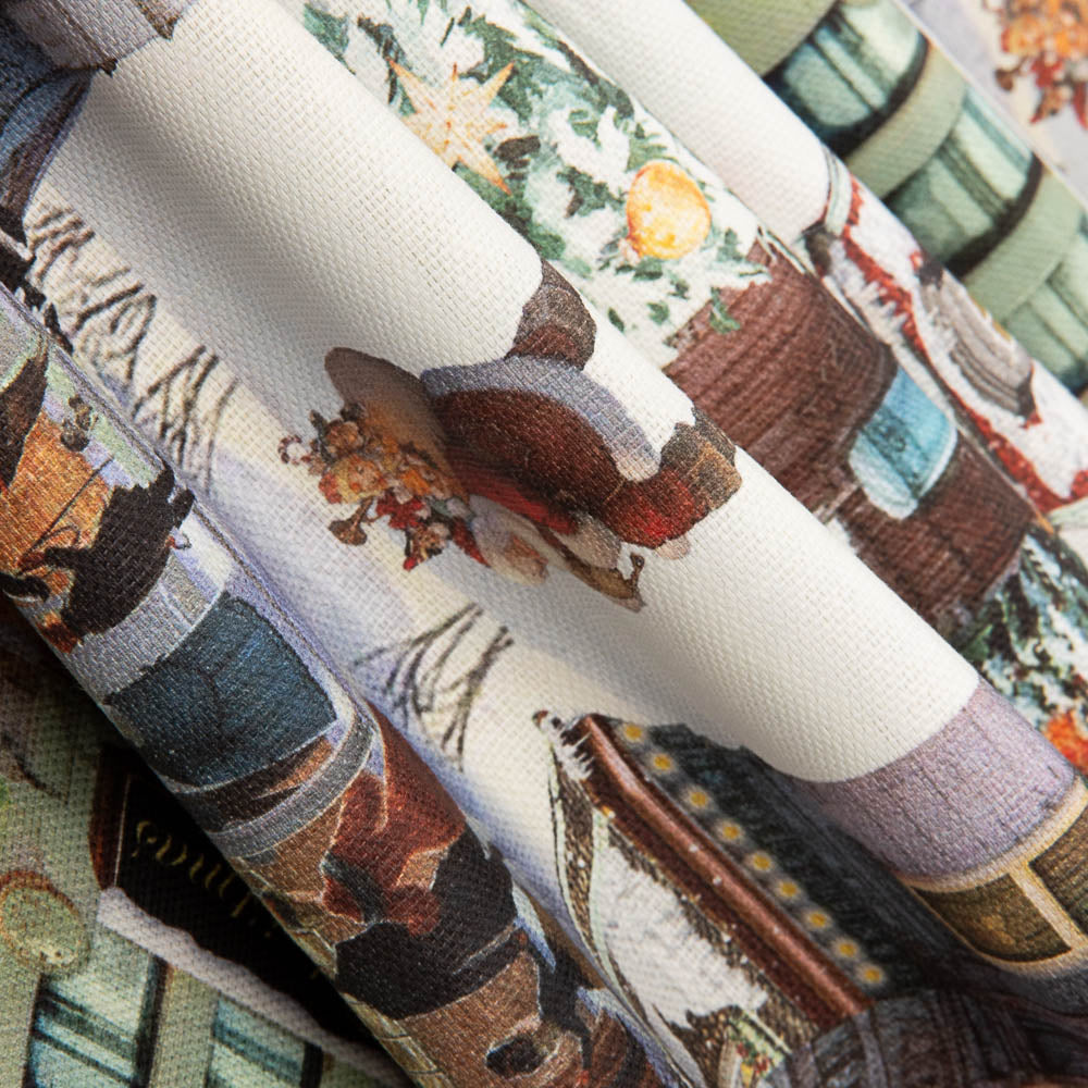 Loneta “Half Panama” de calidad con estampación de motivos navideños de casas decorativas.