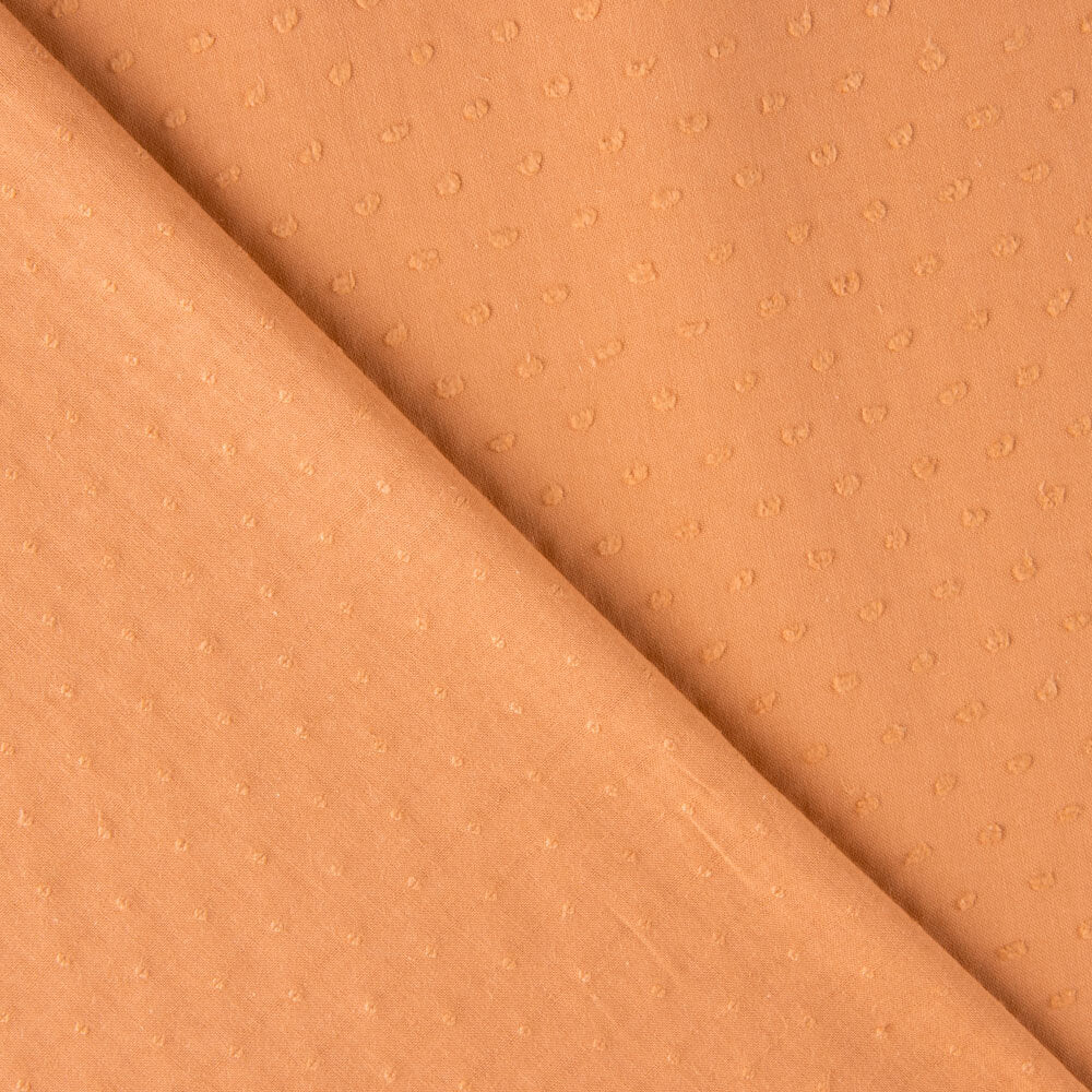 Tela de plumeti marrón teja en algodón de gran calidad y muy versátil. El plumeti es una tela de algodón con un pequeño lunar bordado, sostenido, fino y fluido. Algodón plumeti con el que puedes confeccionar vestidos, faldas y camisas.