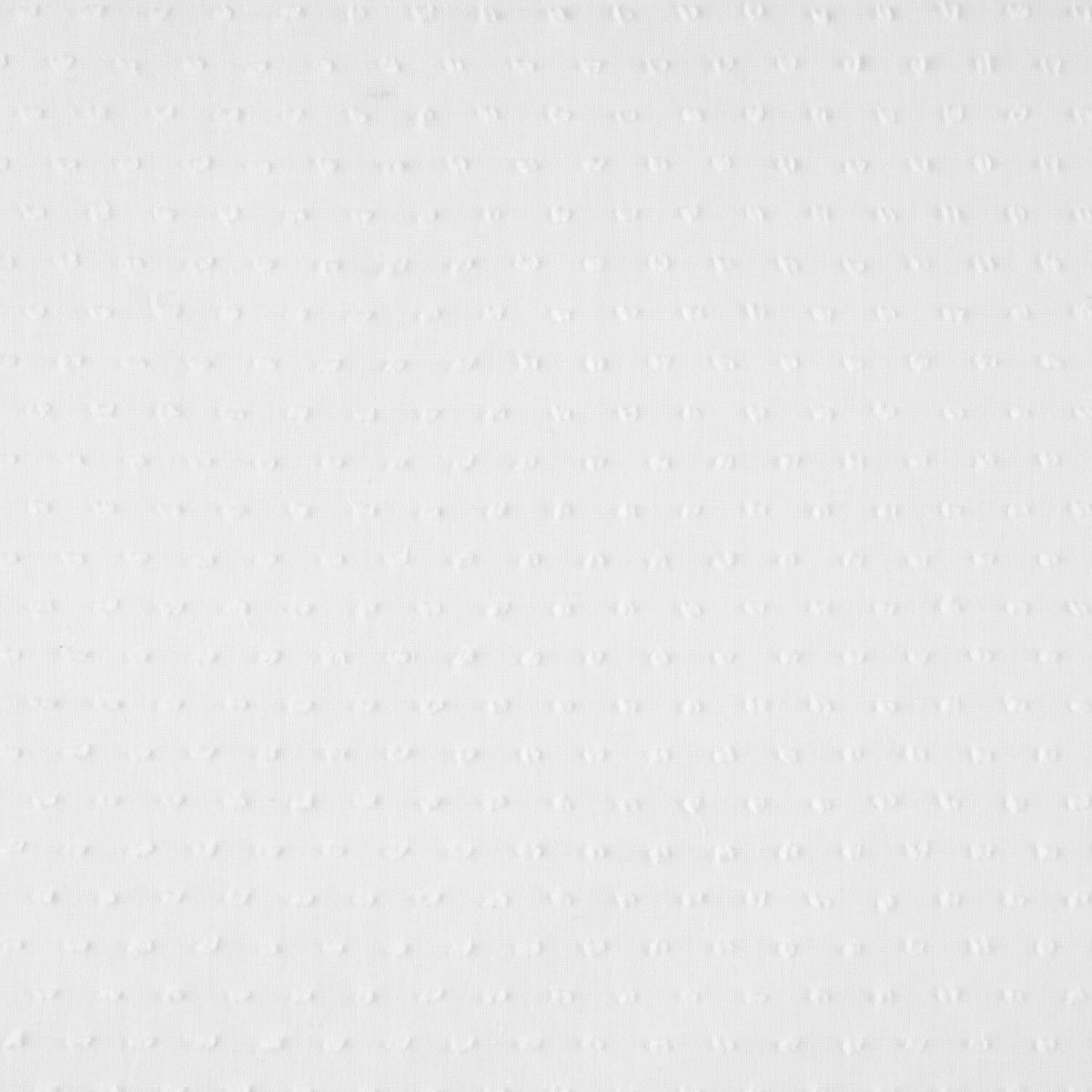 Presenta un bordado en motas pequeñas (plumeti) separadas a 1,3 cm, en el mismo tono blanco, creando un efecto sutil y romántico.