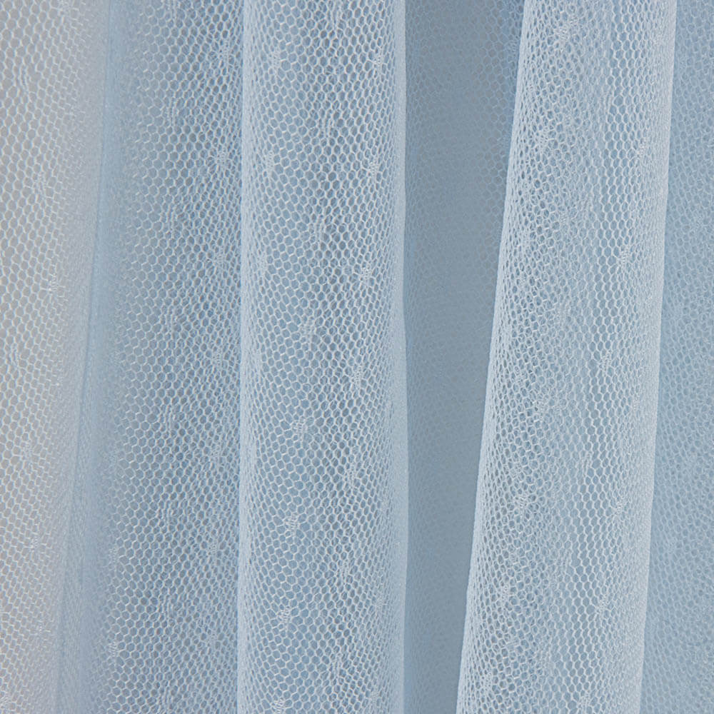Tela de Tul mórbido con efecto plumeti en forma de lágrima de apenas 2 mm. en un color Celeste.