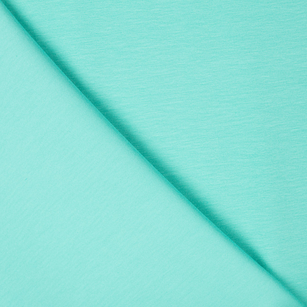 Punto elástico de algodón orgánico de color verde agua con certificado OEKO-TEX y GOTS (Global Orgánic Textile). Contiene un porcentaje de elastano que proporciona mayor comodidad y confort a las prendas. Punto para confeccionar camisetas, vestidos, faldas y pantalones, así como todo tipo de prendas ajustadas.