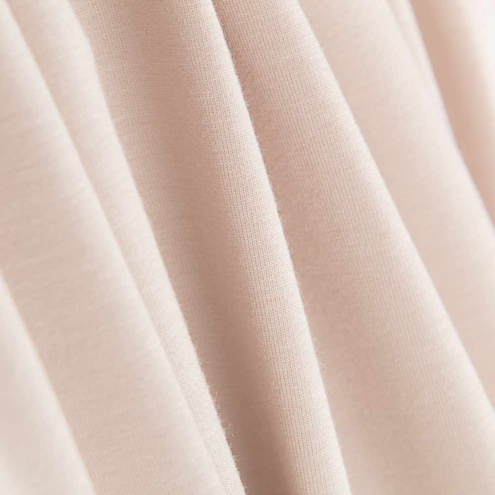 Punto elástico de algodón orgánico de color arena con certificado OEKO-TEX y GOTS (Global Orgánic Textile). Contiene un porcentaje de elastano que proporciona mayor comodidad y confort a las prendas.