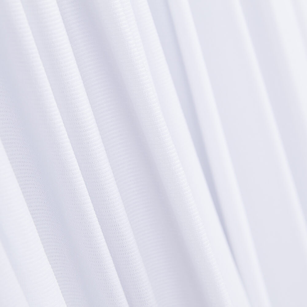 Tela de punto poliéster en color blanco. Tela con mucha caída y de tacto agradable que se ajusta totalmente al cuerpo. Tela con mucha caída ideal para hacer vestidos y drapeados. Al ser un tejido de punto no deshilacha y tiene fácil mantenimiento por su composición. Uso añadido de este tejido es para faldas de ensayo flamenco.