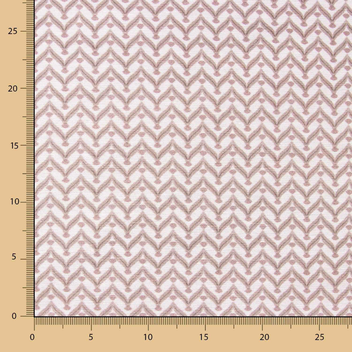 Tela con doble capa de resinado, facilita su limpieza por lo que es ideal para manteles de mesa. Tela con estampado digital de líneas en zig zag en tono marrón sobre base cruda.