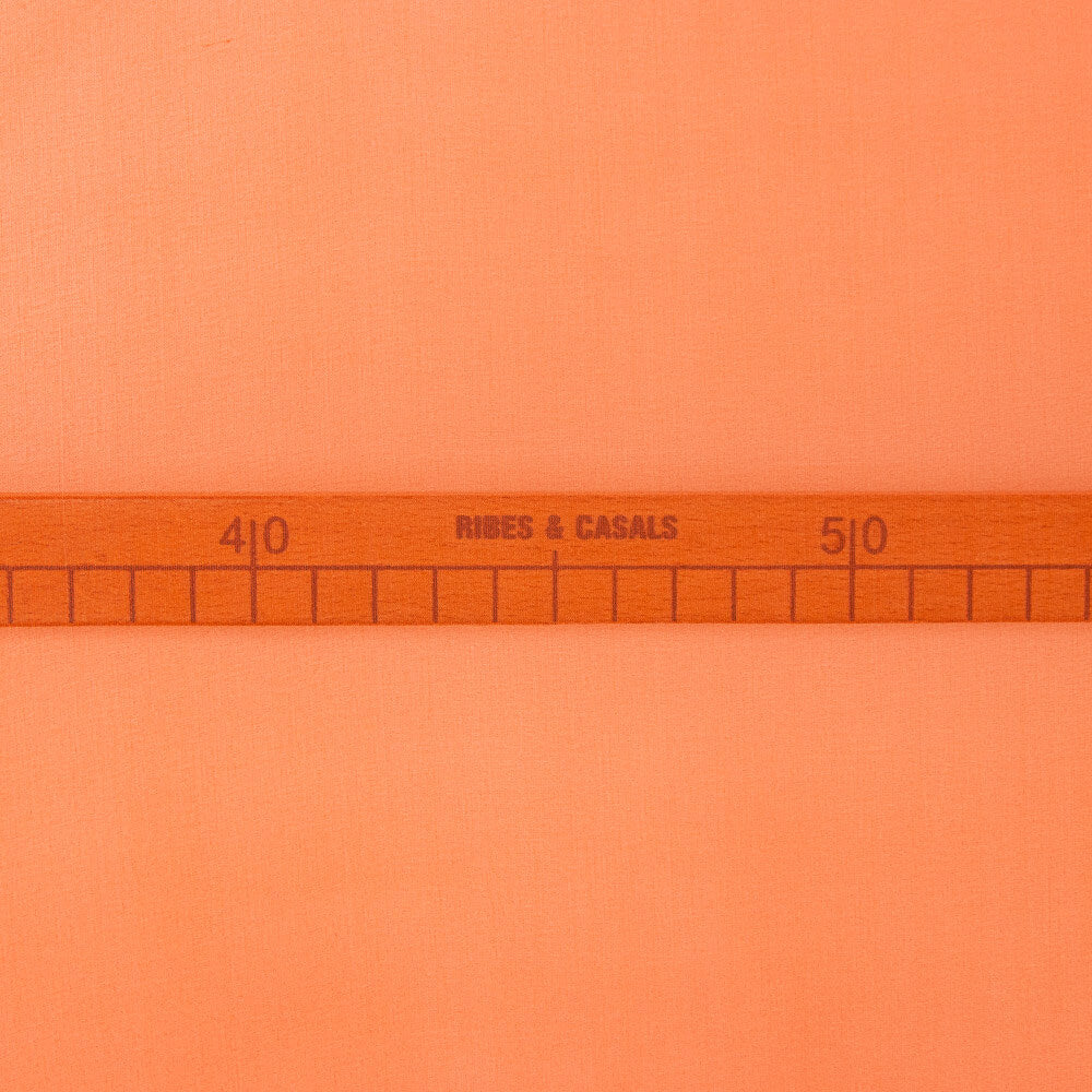 Tela de gasa 100% natural de color mandarina. Tela de seda translúcida, vaporosa y de textura muy suave y muy agradable. La gasa es un complemento básico para la confección de vestidos de fiesta, potenciando el contraste de colores y aportando transparencias y elegancia a las prendas. Ideal para la confección de chales, pañuelos y blusas.