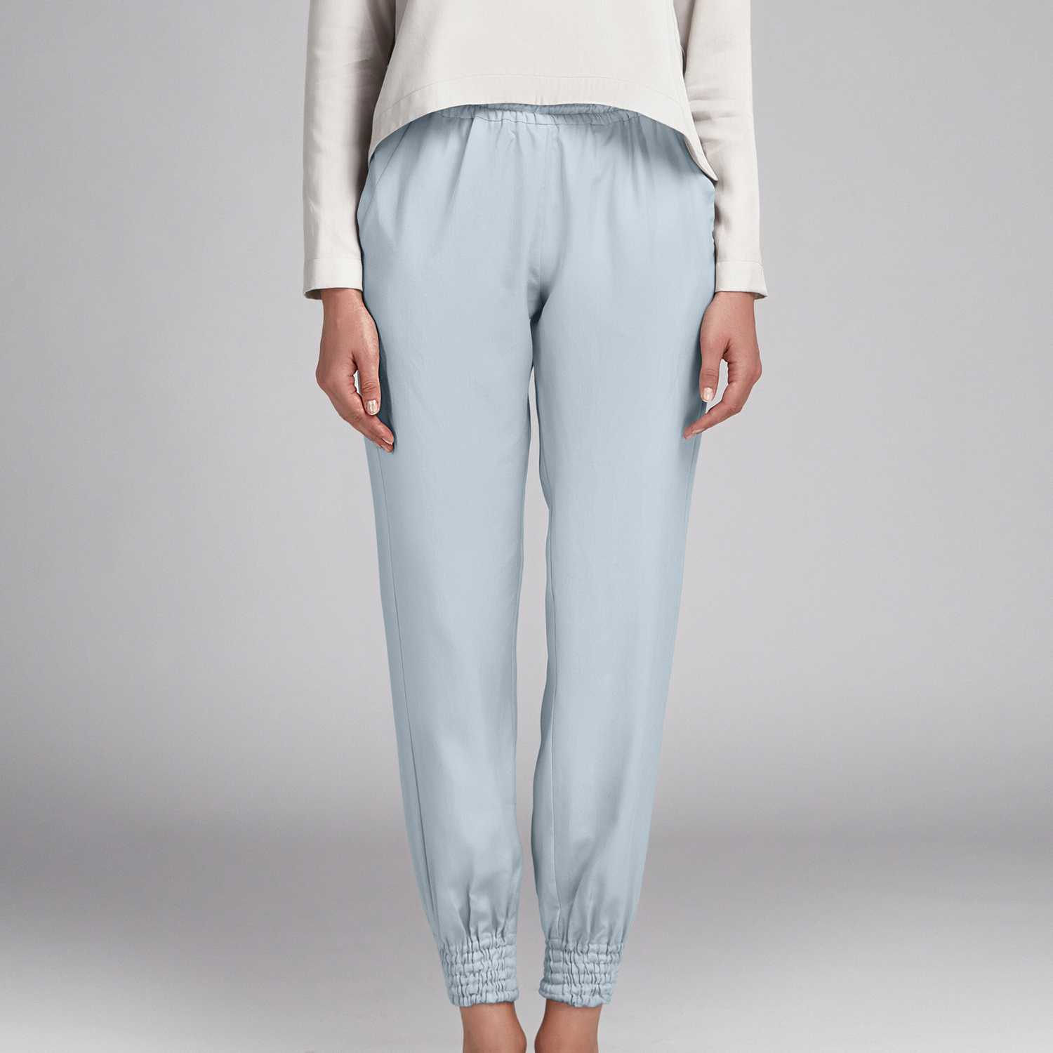 Tela satinada de color azul porcelana. Tela satén poliester o piel de ángel lencero con mucha caída y suave. Satén de poliéster ideal para coser blusas, vestidos y tops lenceros, sin duda una de las prendas de moda para esta temporada.