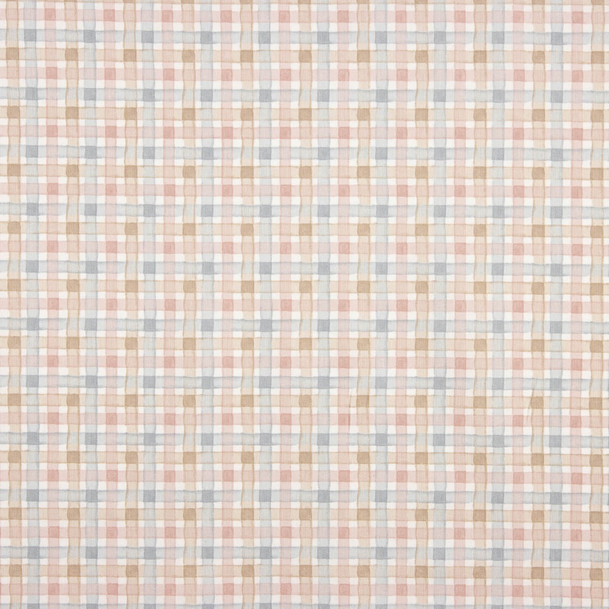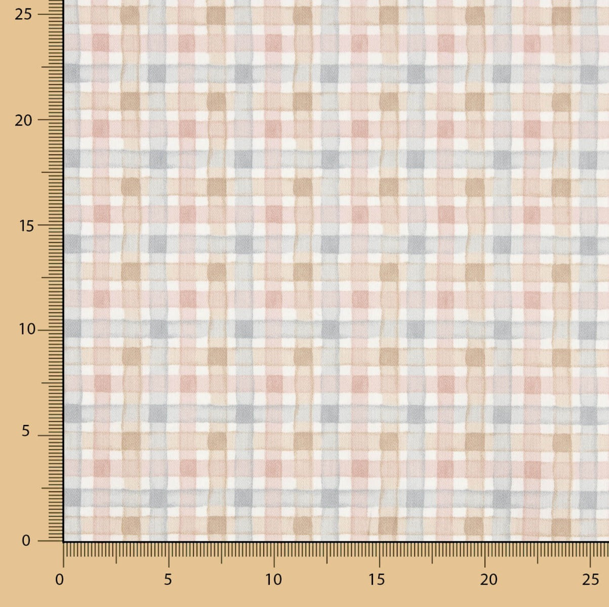 Tela de algodón y viscosa, viyela cálida estampada a cuadros en tonos suaves rosados y marrones.