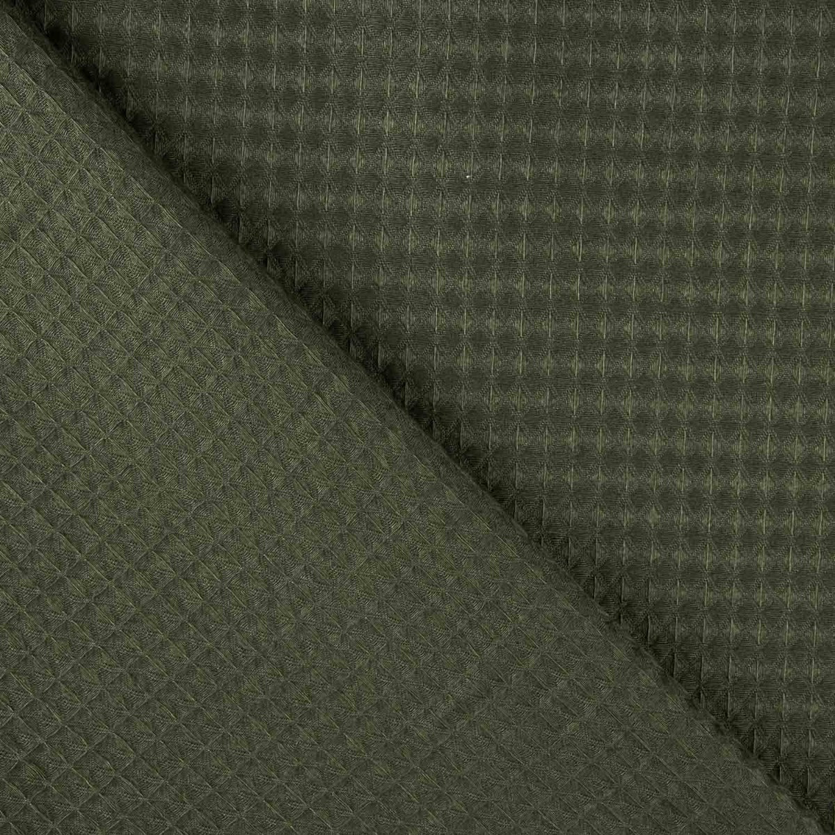 Esta tela de piqué waffle en color verde oscuro de algodón 100% es la opción ideal para quienes buscan un tejido resistente, fresco y con una textura única.