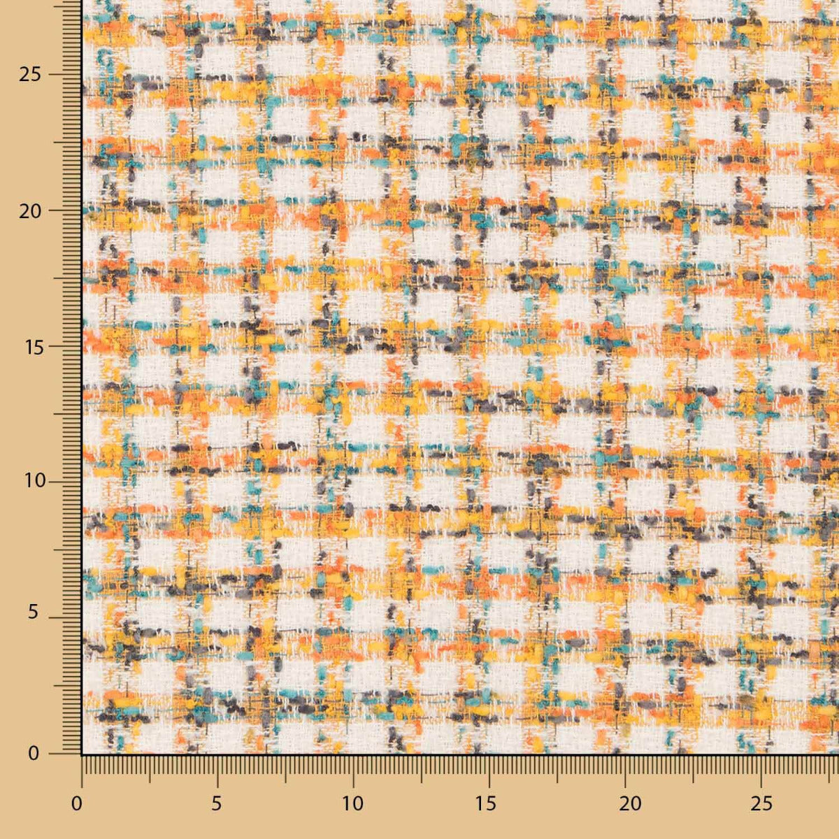 Tela Chanel con dibujo pata gallo amarillo, ideal para chaquetas y abrigos. Tela de trama visible, gruesa, sostenida y suave al tacto. Su composición de mezcla poliéster y lana, gruesa para prendas de exterior o traje chaqueta. Recomendamos lavar en seco o tratamiento tintoreria para mantener la calidad del tejido.