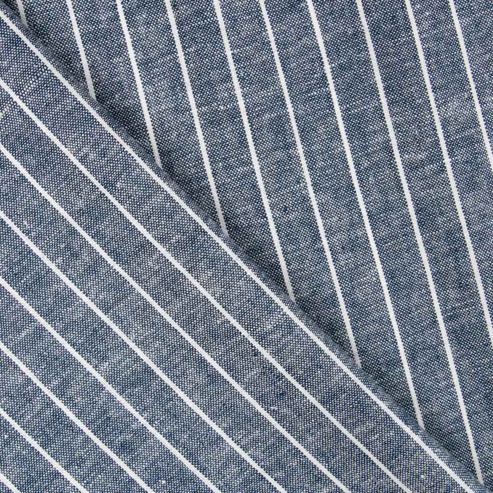 Lino oxford color raya azul para camisas. Tela de fibras naturales que combina las características del lino, con la suavidad, caída y el confort de la viscosa. Sin duda una alternativa de gran calidad para confeccionar camisas, vestidos, faldas y pantalones. Tejido fresco ideal para la temporada de verano, de secado rápido y termo regulable, se adapta bien al clima. Al ser una tela de fibras naturales, aconsejamos un lavado previo antes de ser manipulado.