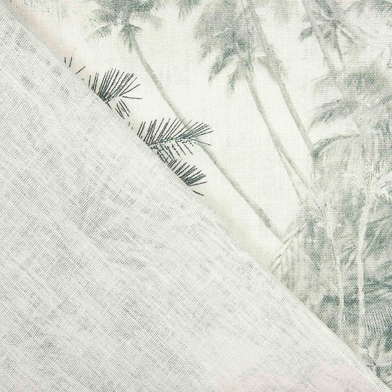 Esta tela de lino 100% estampada con paisaje tropical en tonos verdes aporta frescura, elegancia y un estilo natural a proyectos de decoración textil. Su diseño detallado de vegetación exuberante crea una atmósfera relajada inspirada en paisajes botánicos.