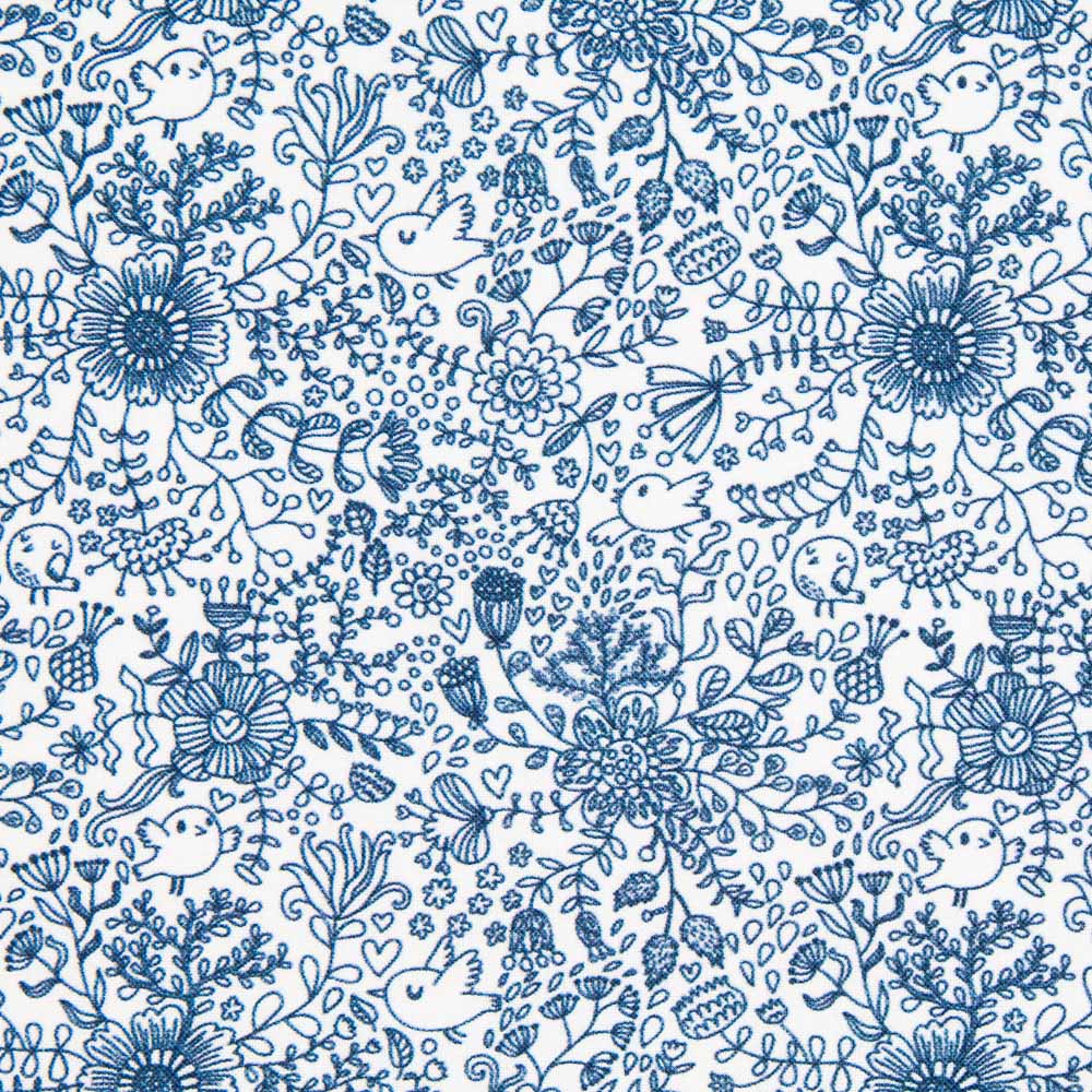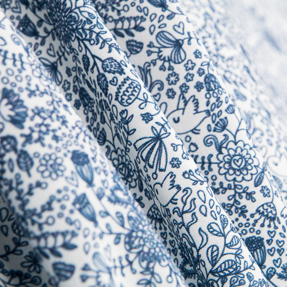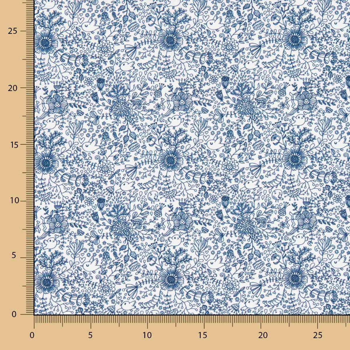 Algodón estampado tipo percal con estampado bosque mágico marino. Tela de algodón orgánico certificado por ICEA de gran calidad, sostenida y suave. Popelín ideal para confección de sábanas, cojines, cortinas y accesorios como neceseres, fundas y bolsas. También es perfecta para creaciones de patchwork y labores.